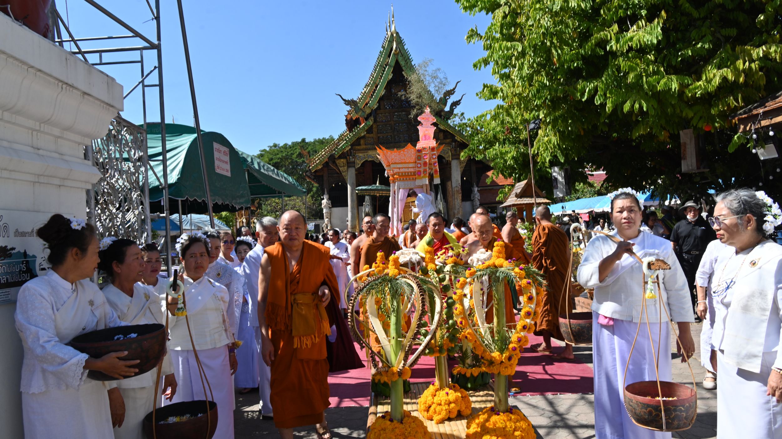 พิธีดังกล่าวได้รับความเมตตาจาก พระครูประภัศร์ธรรมรังษี เจ้าคณะตำบลศรีภูมิ เขต 5 และเจ้าอาวาสวัดกู่เต้า เป็นประธานฝ่ายสงฆ์ โดยมี พระครูปลัดสถิตย์ โพธิญาโณ, ดร. เจ้าอาวาสวัดบวกครกหลวง เป็นผู้ดำเนินการนิมนต์ พร้อมด้วยพระเถรานุเถระร่วมประกอบพิธี ได้แก่ พระครูอดุลสีลกิตติ์ เจ้าคณะตำบลหายยา และเจ้าอาวาสวัดธาตุคำ อือกะลง, พระครูโอภาสปัญญาคม รองเจ้าคณะอำเภอสะเมิง เจ้าอาวาสวัดดับภัย รวมพระเถระจำนวน 4 รูป ร่วมสวดถอนและประกอบพิธีอาราธนาอย่างสมพระเกียรติ