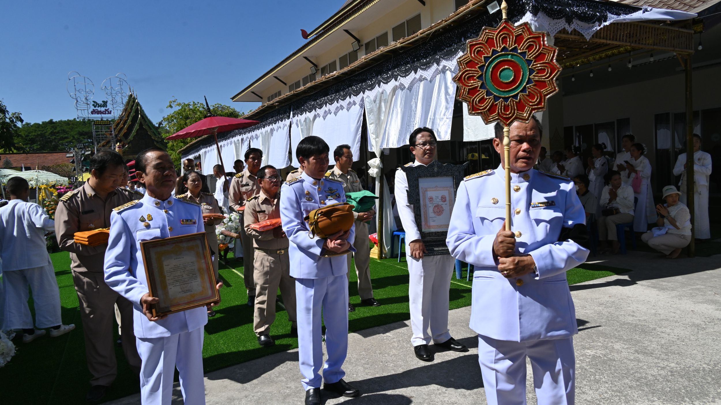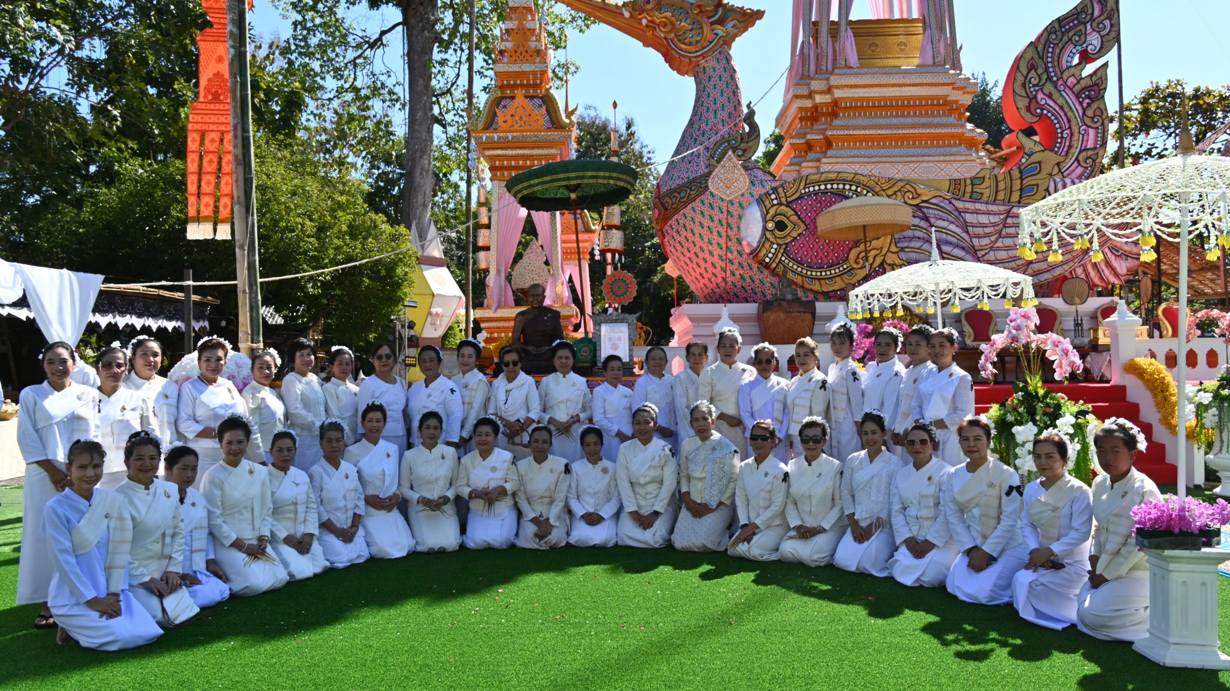 ตลอดขบวนพิธี มีคณะสงฆ์ คณะศรัทธา ศิษยานุศิษย์ และพุทธศาสนิกชนจำนวนมาก ร่วมขอสูมาคารวะและแสดงความอาลัยอย่างพร้อมเพรียง โดยมีคณะช่างฟ้อนพื้นเมืองนับร้อยชีวิต ร่วมแสดงฟ้อนถวายเป็นครั้งสุดท้าย สร้างความซาบซึ้งและความอาลัยอย่างยิ่งแก่ผู้ร่วมงาน