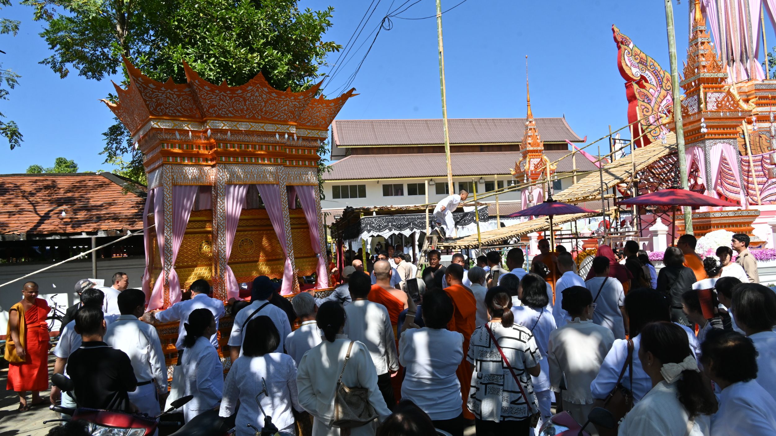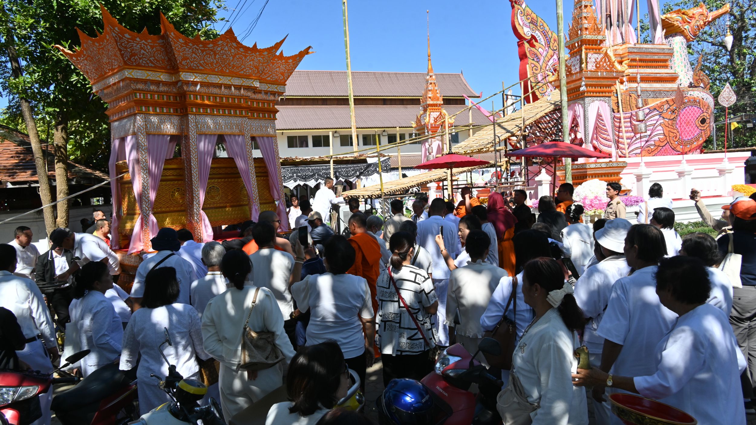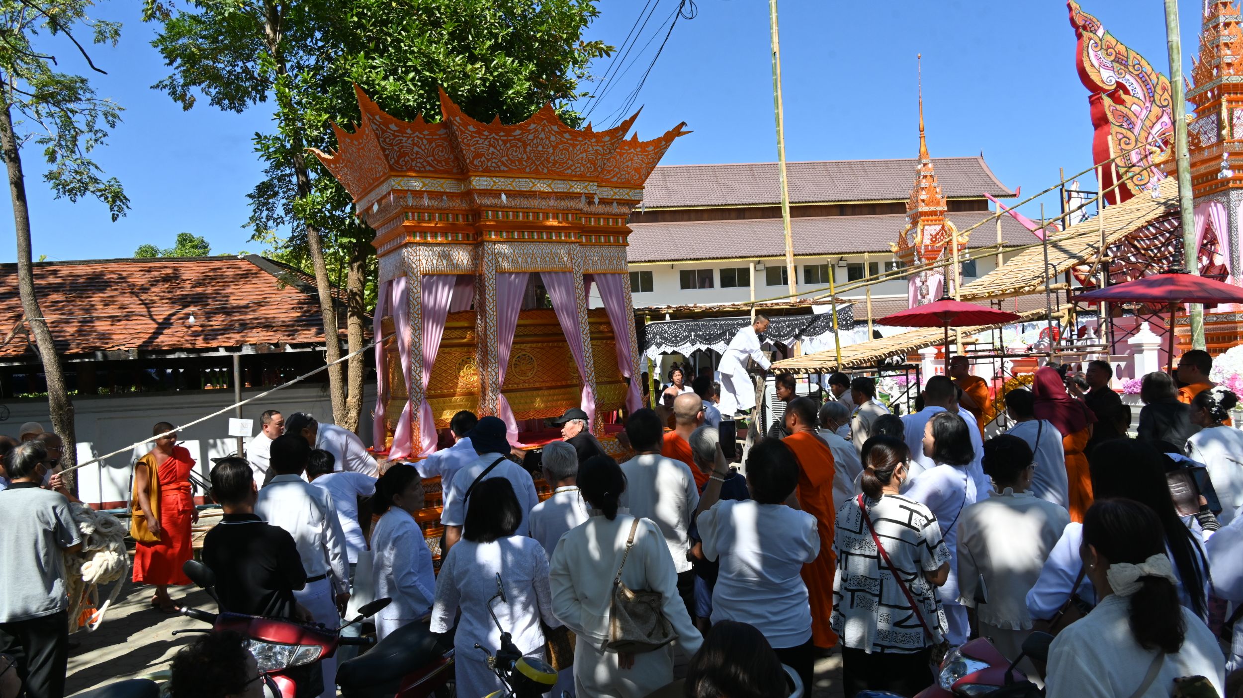 สายธรรมะ » วัดบวกครกหลวง ประกอบพิธีอาราธนา “พระครูสุมงคลรัต” อดีตเจ้าอาวาส ลงจากวิหาร เคลื่อนศพขึ้นตั้งมณฑปปราสาทสุวรรณหงส์ อย่างสมเกียรติ