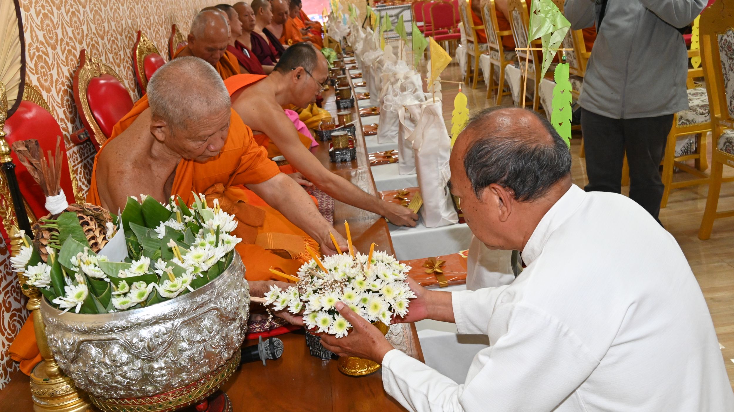 ในการนี้ พระครูปลัดสถิตย์ โพธิญาโณ, ดร. เจ้าอาวาสวัดบวกครกหลวง พร้อมด้วยคณะกรรมการวัด ได้นิมนต์พระสงฆ์จำนวน 28 รูป ประกอบพิธีสวดพระพุทธมนต์ โดยมี พระครูอดุลญาณประยุต (จันทร์ทิพย์ อินฺทญาโณ) รองเจ้าคณะอำเภอสันกำแพง เจ้าอาวาสวัดม่วงม้าใต้ อำเภอสันกำแพง จังหวัดเชียงใหม่ เมตตาเป็นประธานฝ่ายสงฆ์นำสวดพระพุทธมนต์ “อนัตตลักขณสูตร” ซึ่งเป็นพระสูตรสำคัญว่าด้วยหลักไตรลักษณ์ สะท้อนสัจธรรมแห่งชีวิตตามหลักพระพุทธศาสนา