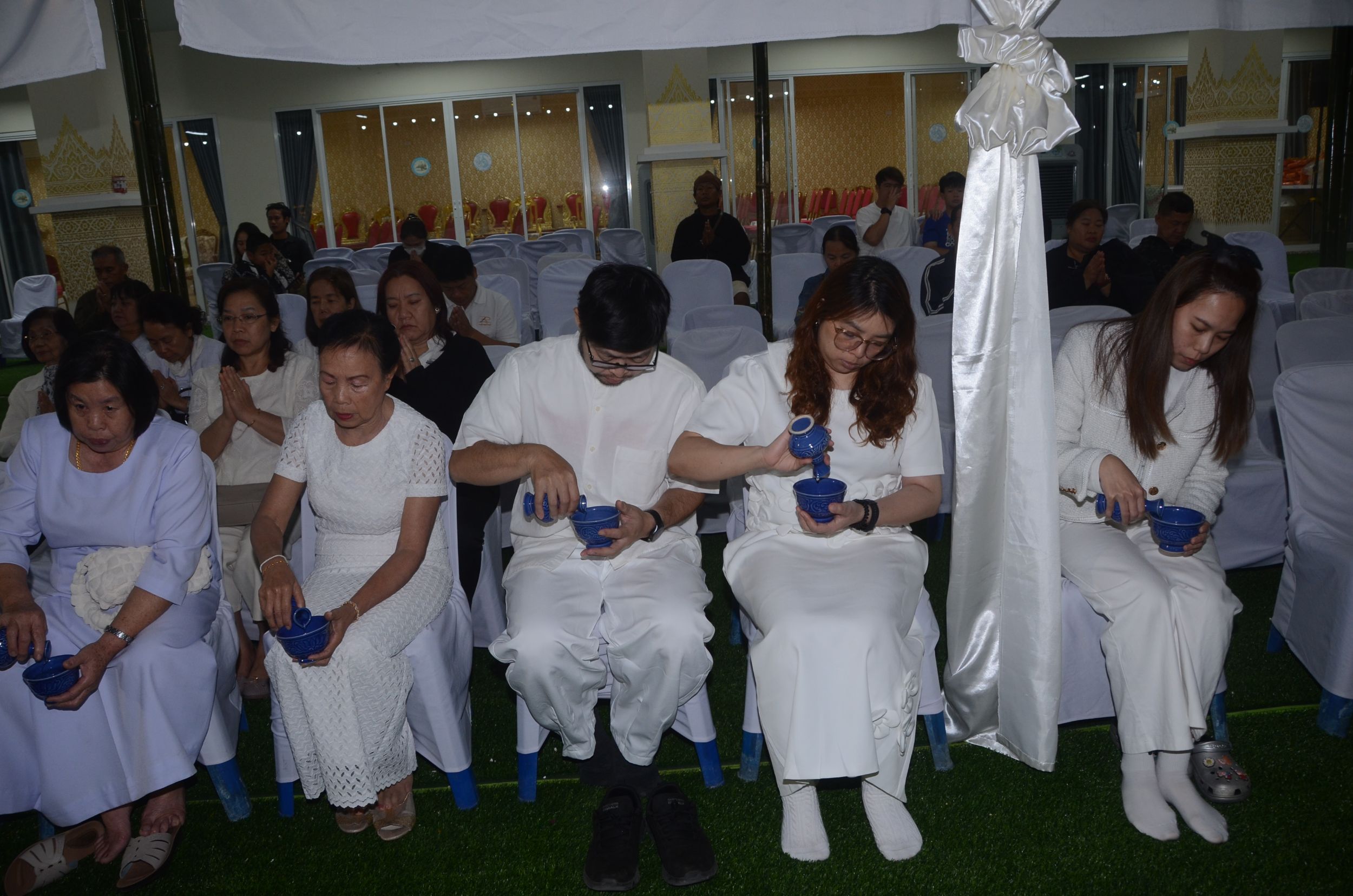 ในการนี้ มี ครอบครัวทนันชัย ครอบครัวกองอินทร์ และครอบครัวกองเพ็ชร ร่วมเป็นเจ้าภาพกัณฑ์เทศน์และการสวดพระอภิธรรม ท่ามกลางพุทธศาสนิกชนจากทั่วสารทิศที่เดินทางมาร่วมพิธี แสดงความอาลัย และร่วมทำบุญบูชาผ้าไตร รวมถึงฟืน เพื่อเป็นกุศลแด่ผู้วายชนม์ บรรยากาศเป็นไปด้วยความสงบ สำรวม และเปี่ยมด้วยศรัทธา
