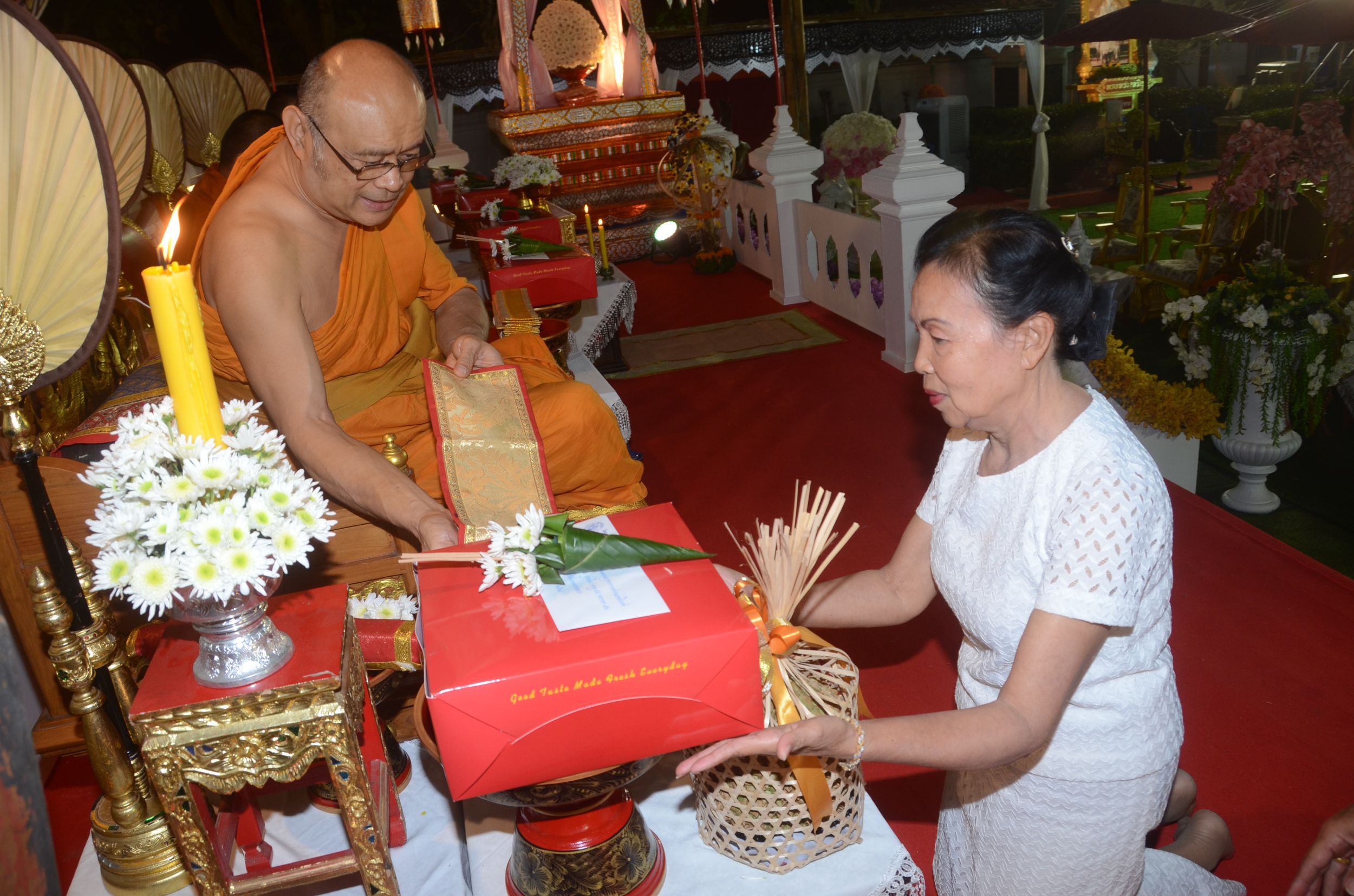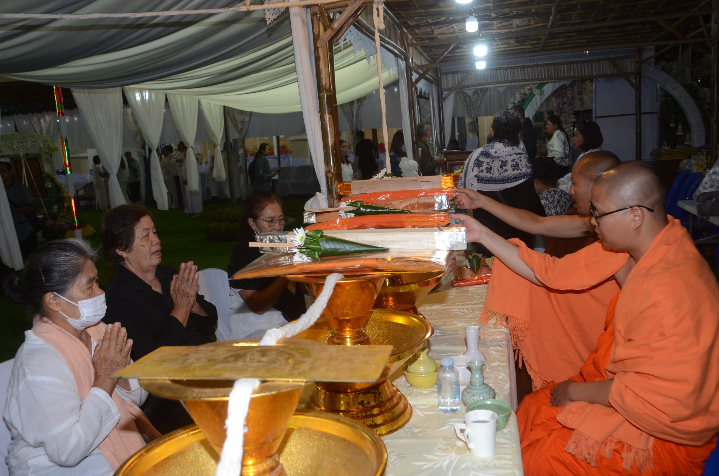 ในการนี้ มี ครอบครัวทนันชัย ครอบครัวกองอินทร์ และครอบครัวกองเพ็ชร ร่วมเป็นเจ้าภาพกัณฑ์เทศน์และการสวดพระอภิธรรม ท่ามกลางพุทธศาสนิกชนจากทั่วสารทิศที่เดินทางมาร่วมพิธี แสดงความอาลัย และร่วมทำบุญบูชาผ้าไตร รวมถึงฟืน เพื่อเป็นกุศลแด่ผู้วายชนม์ บรรยากาศเป็นไปด้วยความสงบ สำรวม และเปี่ยมด้วยศรัทธา