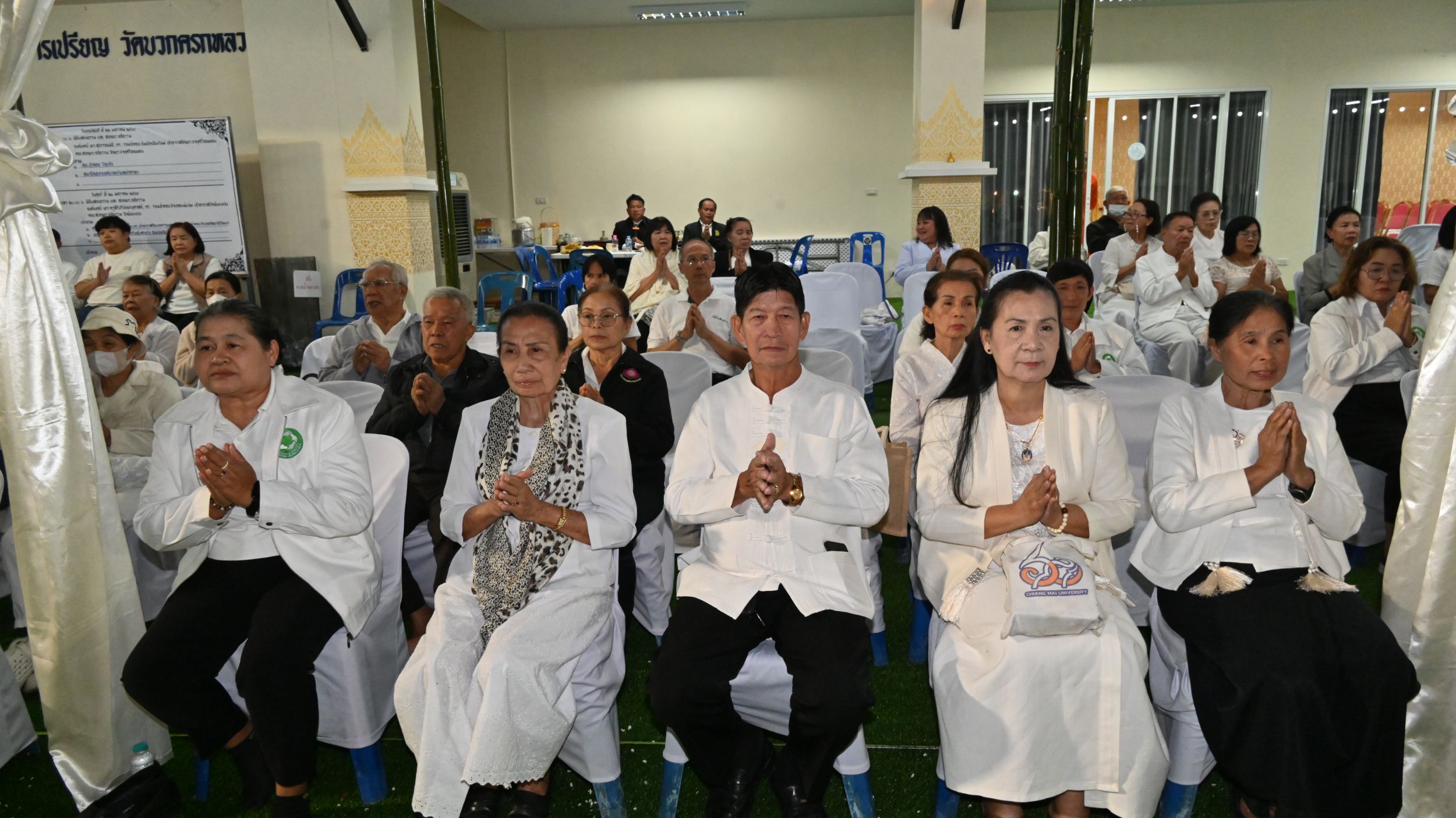 ทั้งนี้ มี สมาชิกสภาเทศบาลตำบลท่าศาลา นำโดย นายสมบูรณ์ อินตา ประธานสภาเทศบาลฯ พร้อมด้วย คุณสมคิด เลิศเกียรติดำรง และ คุณวรรณา เลิศเกียรติดำรง ร่วมเป็นเจ้าภาพกัณฑ์เทศน์และเจ้าภาพสวดพระอภิธรรม ร่วมกับคณะญาติธรรม ศิษยานุศิษย์ และพุทธศาสนิกชนทั่วไป ซึ่งต่างพร้อมใจกันร่วมทำบุญบูชาผ้าไตรและฟืน เพื่ออุทิศเป็นกุศลแด่ผู้วายชนม์