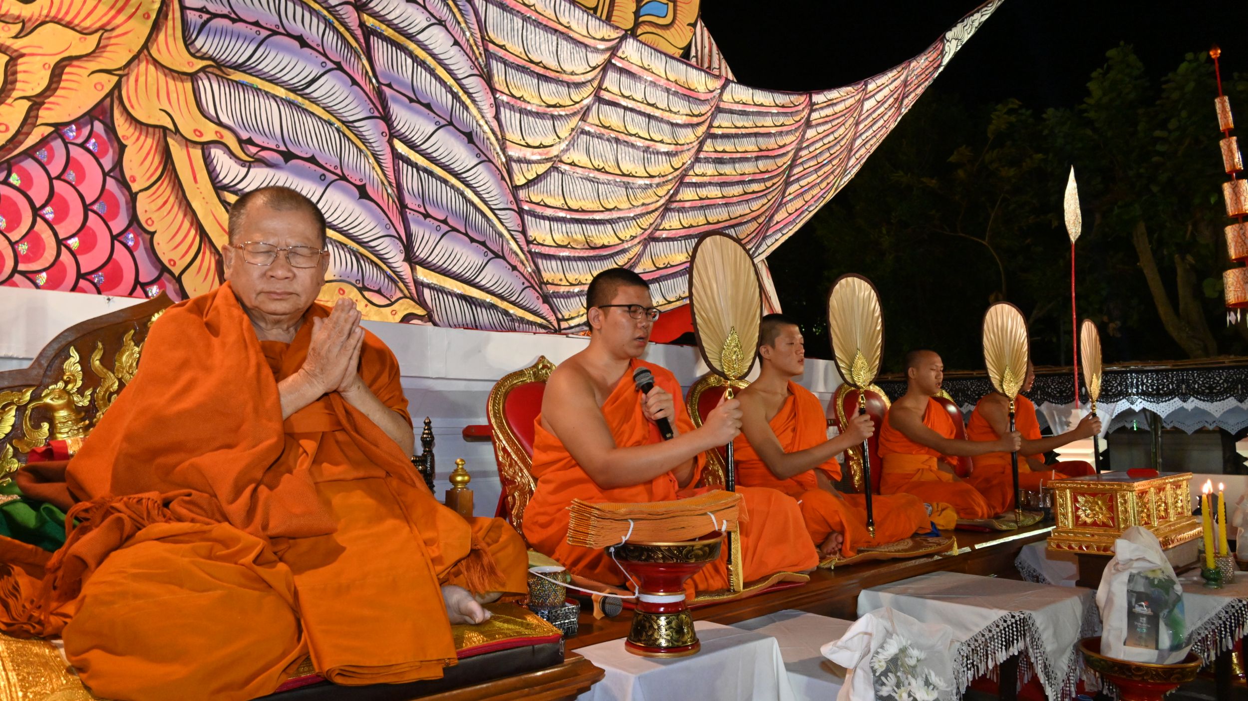 จากนั้นเป็นพิธีสวดพระอภิธรรม โดยพระสงฆ์จตุรวรรคจากวัดหนองป่าครั่ง พร้อมด้วยคณะสงฆ์ผู้ทรงศีลานุศีล สร้างความสงบทางจิตใจแก่ผู้ร่วมงาน และเป็นการสืบทอดขนบธรรมเนียมประเพณีอันดีงามของพระพุทธศาสนา
