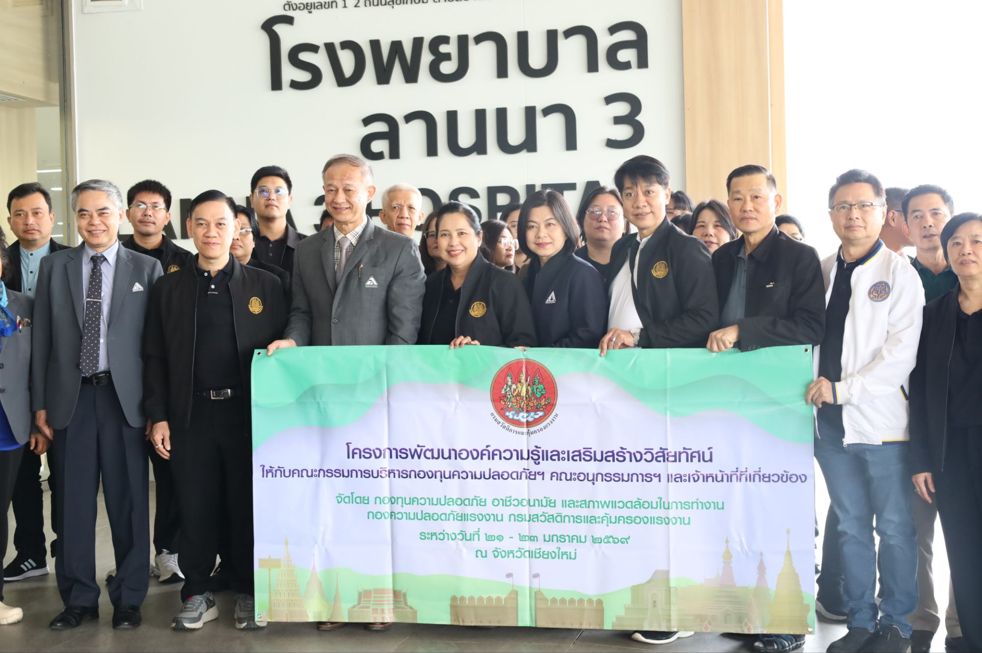 วันที่ 23 มกราคม 2569 ณ โรงพยาบาลลานนา 3 … นพ.ดุสิต ศรีสกุล ผู้อำนวยการ โรงพยาบาลลานนา และ นพ.ธีระยุทธ นิยมกูล ผู้อำนวยการ โรงพยาบาลลานนา3 ให้การต้อนรับ นายศักดิ์ศิลป์ ตุลาธร รองอธิบดีกรมสวัสดิการและคุ้มครองแรงงาน พร้อมคณะกรรมการบริหารกองทุนความปลอดภัย อาชีวอนามัย และสภาพแวดล้อมในการทำงาน สังกัดกรมสวัสดิการ และคุ้มครองแรงงาน เข้าศึกษาดูงานการบริหารจัดการด้านความปลอดภัยในการทำงาน และการปรับปรุงสภาพแวดล้อมในการทำงานของโรงพยาบาลลานนา 3 หลังได้รับผลกระทบจากมหาภัยพิบัติอุทกภัยครั้งใหญ่ของเชียงใหม่ เมื่อปี 2567 เพื่อเป็นการเรียนรู้แนวทางการสร้างกำแพงและประตูกั้นน้ำ รองรับและป้องกันความเสี่ยงจากอุทกภัย ที่อาจส่งผลกระทบต่อสถานประกอบการและสถานพยาบาล