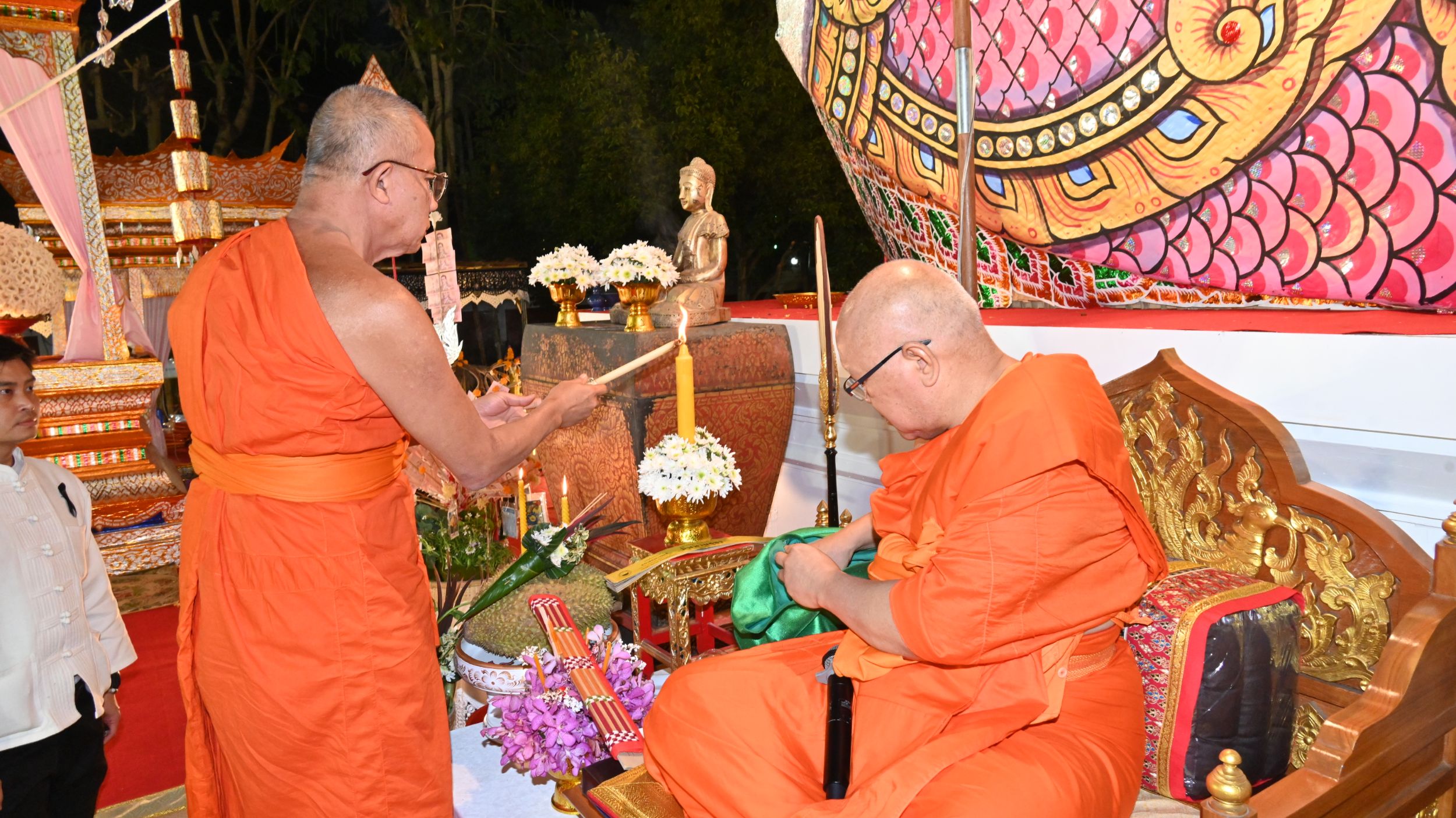 ทั้งนี้ มีพระเถรานุเถระและพระสังฆาธิการชั้นผู้ใหญ่เข้าร่วมพิธี อาทิ พระครูวิทิตศาสนาทร, ผศ.ดร. พระครูวิสิฐศีลาภรณ์ รองเจ้าคณะอำเภอเมืองเชียงใหม่, พระครูบัณฑิตวชิราภรณ์, ดร. เลขานุการเจ้าคณะจังหวัดเชียงใหม่, พระครูปลัดอานนท์ อภิชาโน, ดร. เจ้าคณะตำบลท่าศาลา–หนองป่าครั่ง และ พระครูปลัดมนตรี ติสฺสโร, ดร.