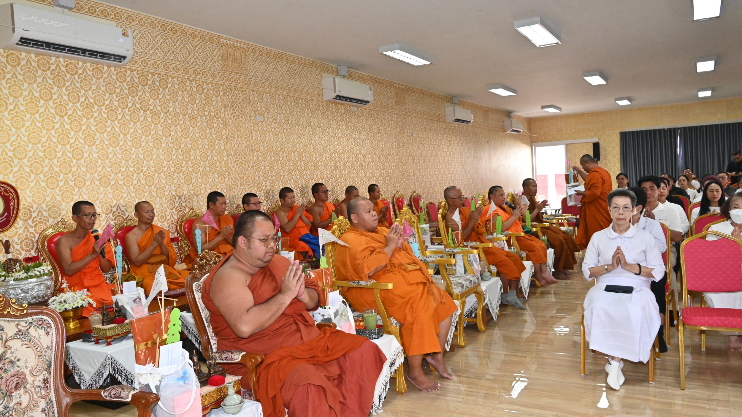 ในการนี้ได้รับความเมตตาจาก พระครูวีรศาสน์ธำรง (สุวรรณ เตชวโร) ผู้ช่วยเจ้าอาวาสวัดศรีโสดา พระอารามหลวง ตำบลสุเทพ อำเภอเมืองเชียงใหม่ จังหวัดเชียงใหม่ ทำหน้าที่เป็นประธานนำสวดพระพุทธมนต์ “ธัมมสังคิณีมาติกาปาฐะ” ท่ามกลางบรรยากาศอันสงบ สำรวม และเปี่ยมด้วยความอาลัย โดยมีคณะเจ้าภาพ ญาติธรรม ศิษยานุศิษย์ และพุทธศาสนิกชนจากหลายพื้นที่เข้าร่วมพิธีเป็นจำนวนมาก