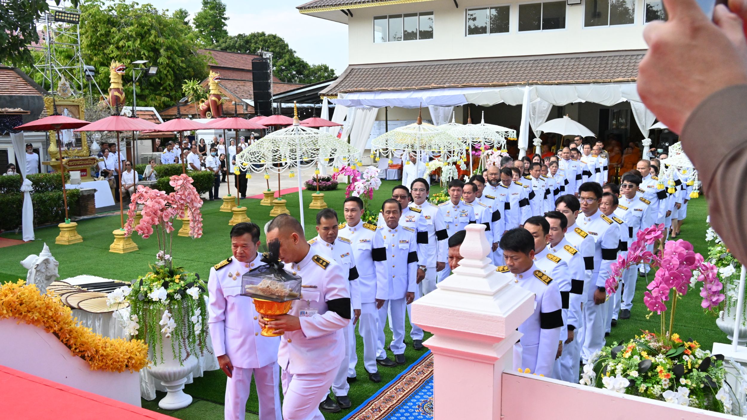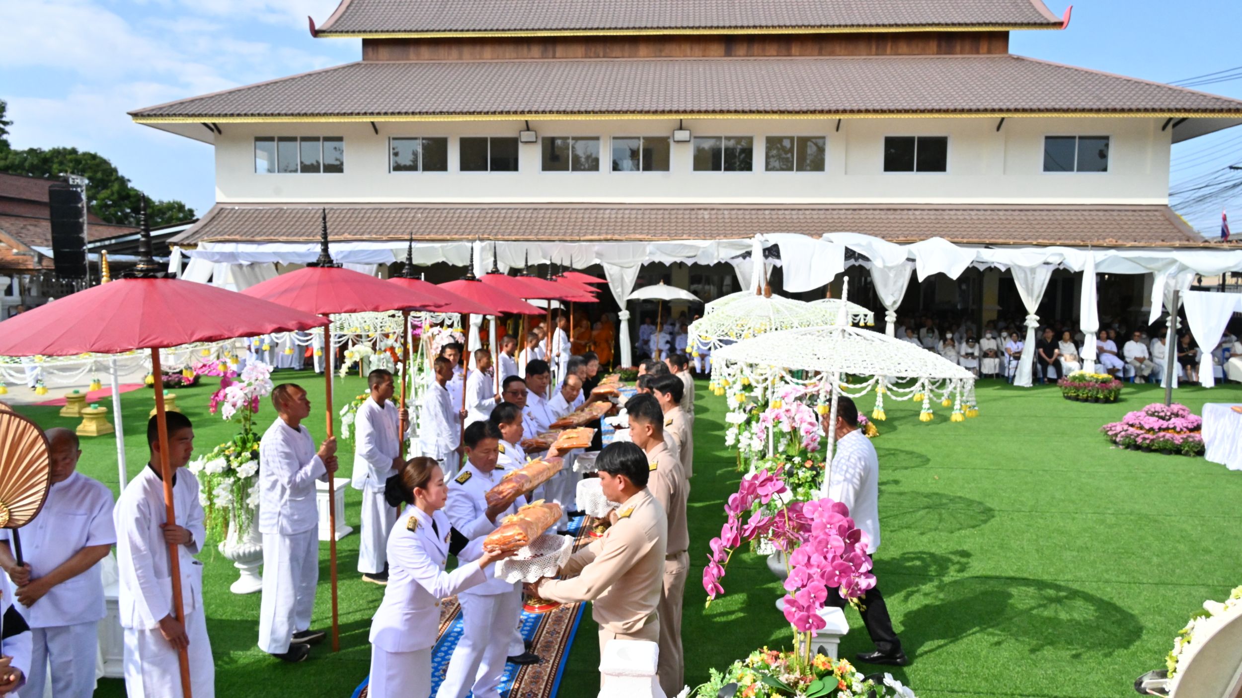 การนี้ พระครูปลัดสถิตย์ โพธิญาโณ, ดร. เจ้าอาวาสวัดบวกครกหลวง พร้อมด้วย พระครูปลัดอานนท์ อภิชาโน, ดร. เจ้าคณะตำบลท่าศาลา–หนองป่าครั่ง, พระครูปลัดมนตรี ติสฺสโร, ดร. เจ้าสำนักสงฆ์มิ่งมงคล และ พระสมุห์กฤษฎา ปภสฺสโร เจ้าอาวาสวัดบวกครกน้อย พร้อมคณะกรรมการวัด ได้ร่วมกันนิมนต์พระเถรานุเถระจำนวน 50 รูป เข้าร่วมพิธี โดยมีพระเถรานุเถระชั้นผู้ใหญ่ อาทิ พระราชรัชมุนี, พระวิมลมุนี รองเจ้าคณะจังหวัดเชียงใหม่, พระภาวนาธรรมาภิรัช วิ. เจ้าคณะอำเภอเมืองเชียงใหม่ และ พระวิสุทธิวัชราภรณ์ รองเจ้าคณะอำเภอแม่ริม ร่วมประกอบพิธีสวดพระพุทธมนต์ “ธัมมสังคิณีมาติกาปาฐะ” จากนั้นมัคนายกได้กล่าวคำถวายสังฆทาน พระสงฆ์รับสังฆทานและอนุโมทนา