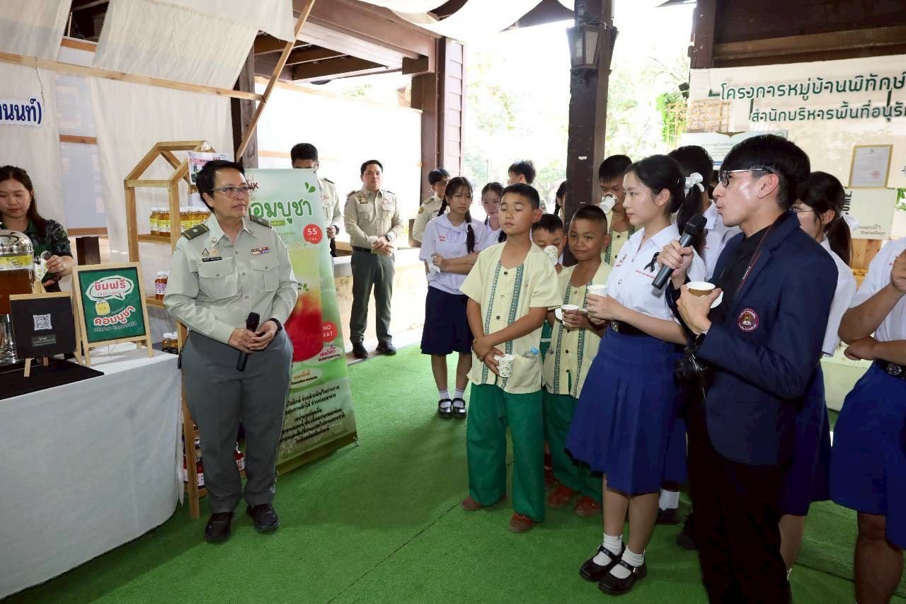 ทั้งนี้ประธานและผู้เข้าร่วมพิธีได้ร่วมกันยืนสงบนิ่งถวายความอาลัยเป็นเวลา 93 วินาที ก่อนจะทำพิธีตัดริบบิ้นเปิดนิทรรศการอย่างเป็นทางการ ซึ่งภายในนิทรรศการมีการจัดแสดงโซนเทิดพระเกียรติ และการจัดจำหน่ายผลิตภัณฑ์จากโครงการพระราชดำริ.