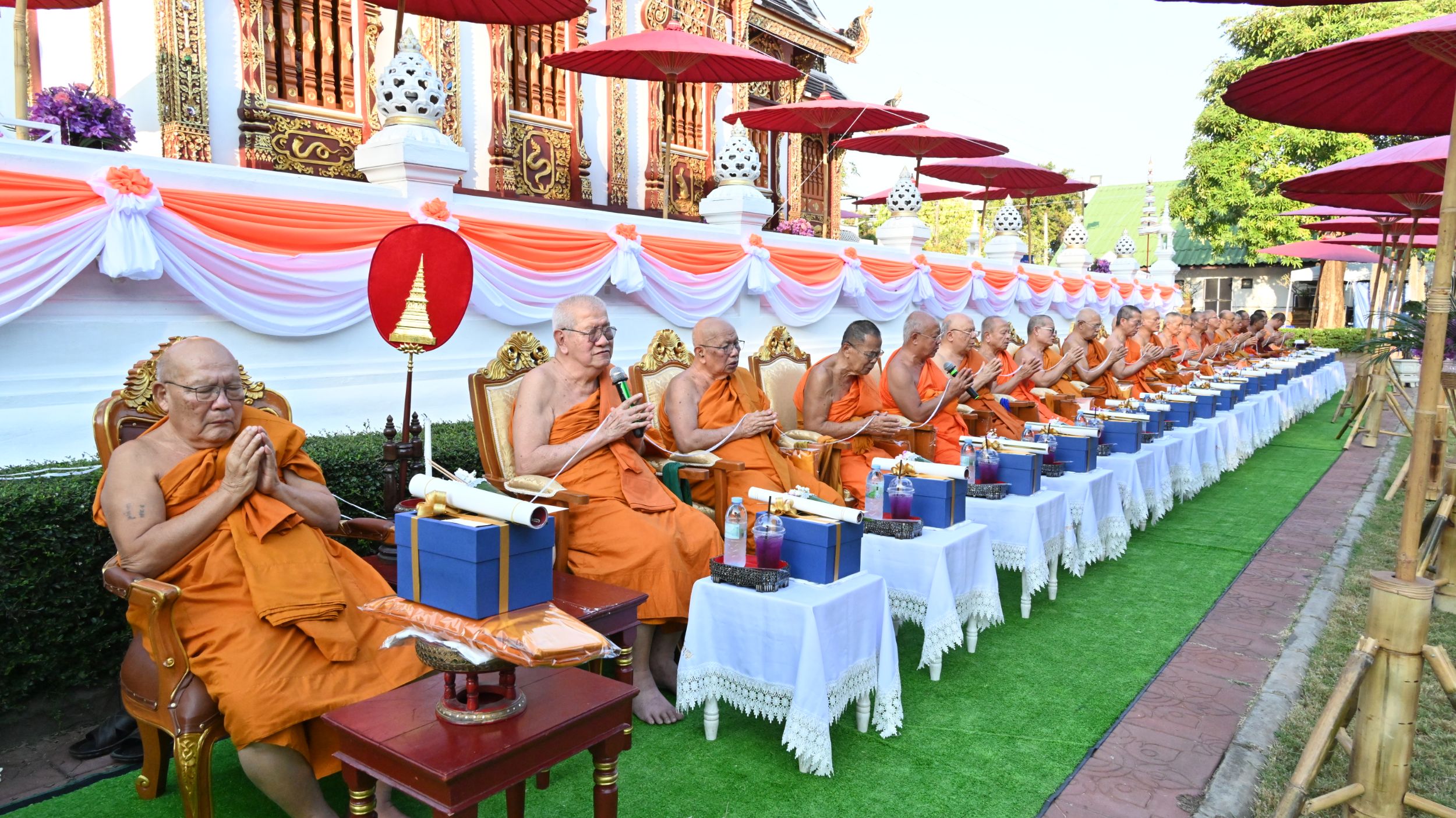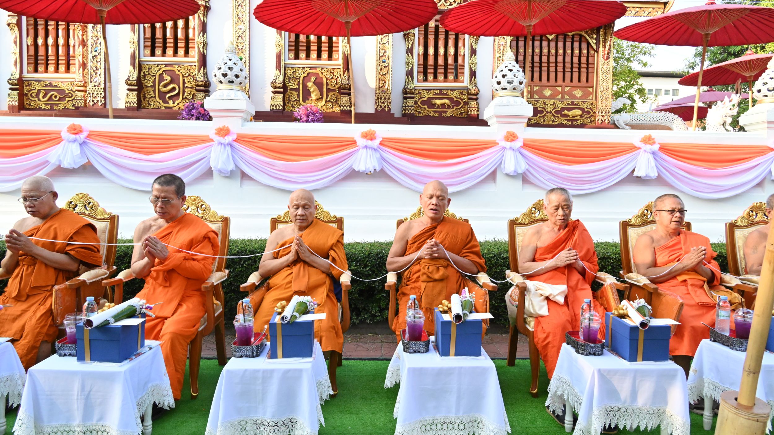 ทั้งนี้ คณะสงฆ์ได้ให้พรแก่ผู้ร่วมพิธีและผู้มีจิตศรัทธาทุกท่าน ขออานุภาพแห่งกุศลผลบุญอันมีมหาอานิสงส์จากการร่วมพิธีในครั้งนี้ จงเป็นบุญญาบารมี ตบะ เดชพละ เป็นปัจจัยเกื้อหนุน ดลบันดาลให้ทุกท่านประสบแต่ความสุข ความเจริญ เพียบพร้อมด้วยจตุรพิธพรชัยมงคล คือ อายุ วรรณะ สุขะ พละ ปฏิภาณ และธนสารสมบัติ สมความมุ่งมาดปรารถนาโดยทั่วกัน.