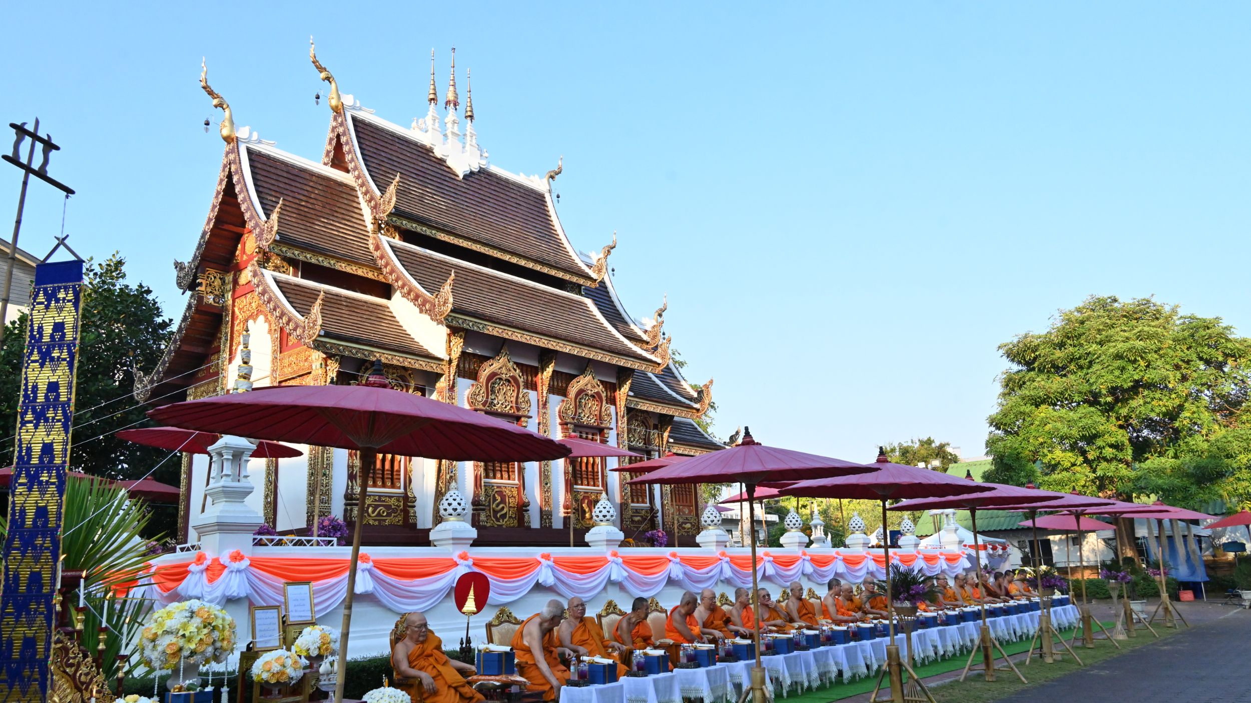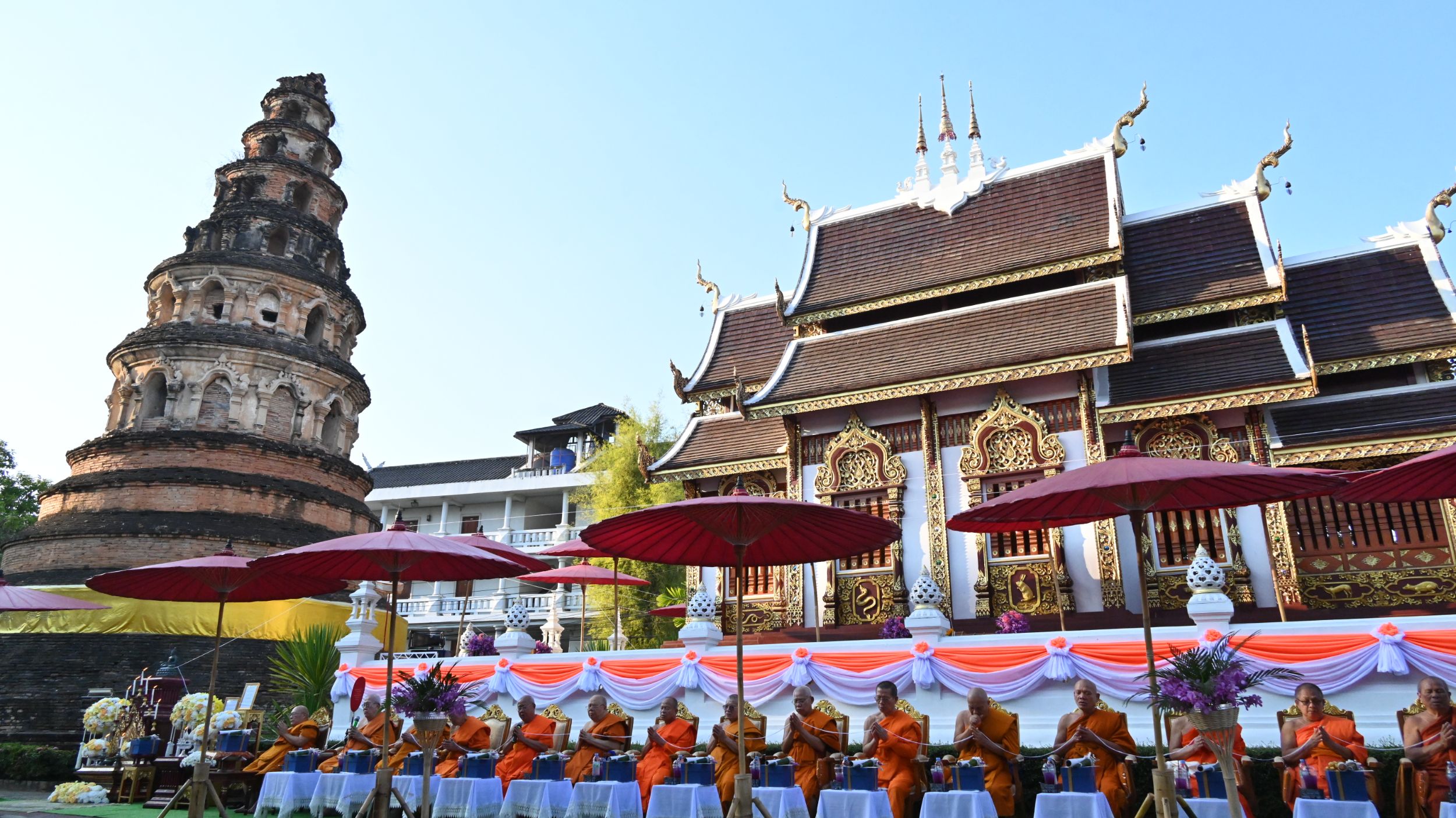 พิธีดังกล่าวจัดขึ้นโดยมี พระมหาเดชรชต สิริญาณเมธี เจ้าอาวาสวัดเชียงโฉม (เจดีย์ปล่อง) เป็นประธานฝ่ายดำเนินงาน นิมนต์พระเถรานุเถระและเจ้าคณะพระสังฆาธิการ รวมทั้งสิ้นจำนวน 22 รูป เข้าร่วมประกอบพิธี โดยได้รับความเมตตาจาก พระเทพมังคลาจารย์ เจ้าคณะจังหวัดเชียงใหม่ เจ้าอาวาสวัดท่าตอน พระอารามหลวง เมตตาเป็นประธานฝ่ายสงฆ์ นำคณะพระสงฆ์ประกอบพิธีสวดเจริญพระพุทธมนต์สมโภชอย่างสมบูรณ์ตามพระราชประเพณีและพระธรรมวินัย