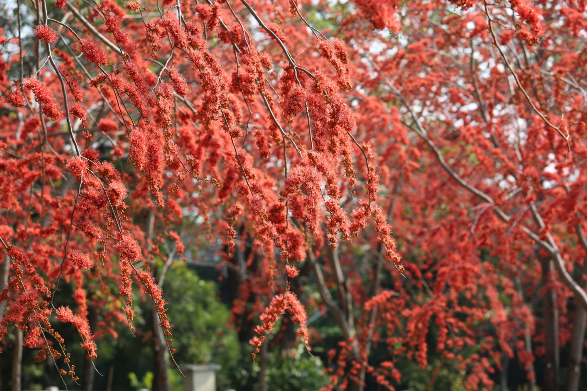 เมื่อถึงฤดูบานดอกประดู่แดงจะผลิบานเป็นสีแดงสดทั่วทั้งเรือนยอด เปลี่ยนลานประดู่แดงให้กลายเป็นทะเลสีแดงสุดโรแมนติก