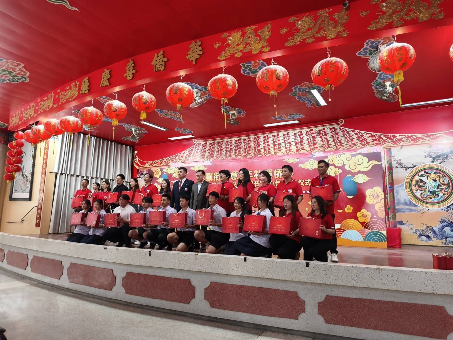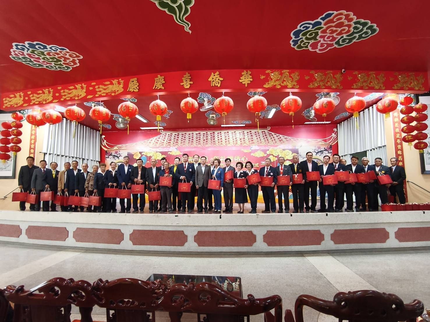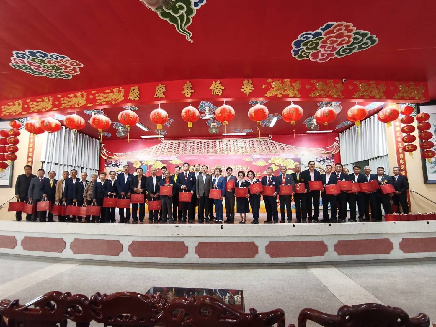 ผู้นำชาวจีนโพ้นทะเล ตัวแทนสมาคม คณะครู นักเรียน และสื่อมวลชน ร่วมพิธี