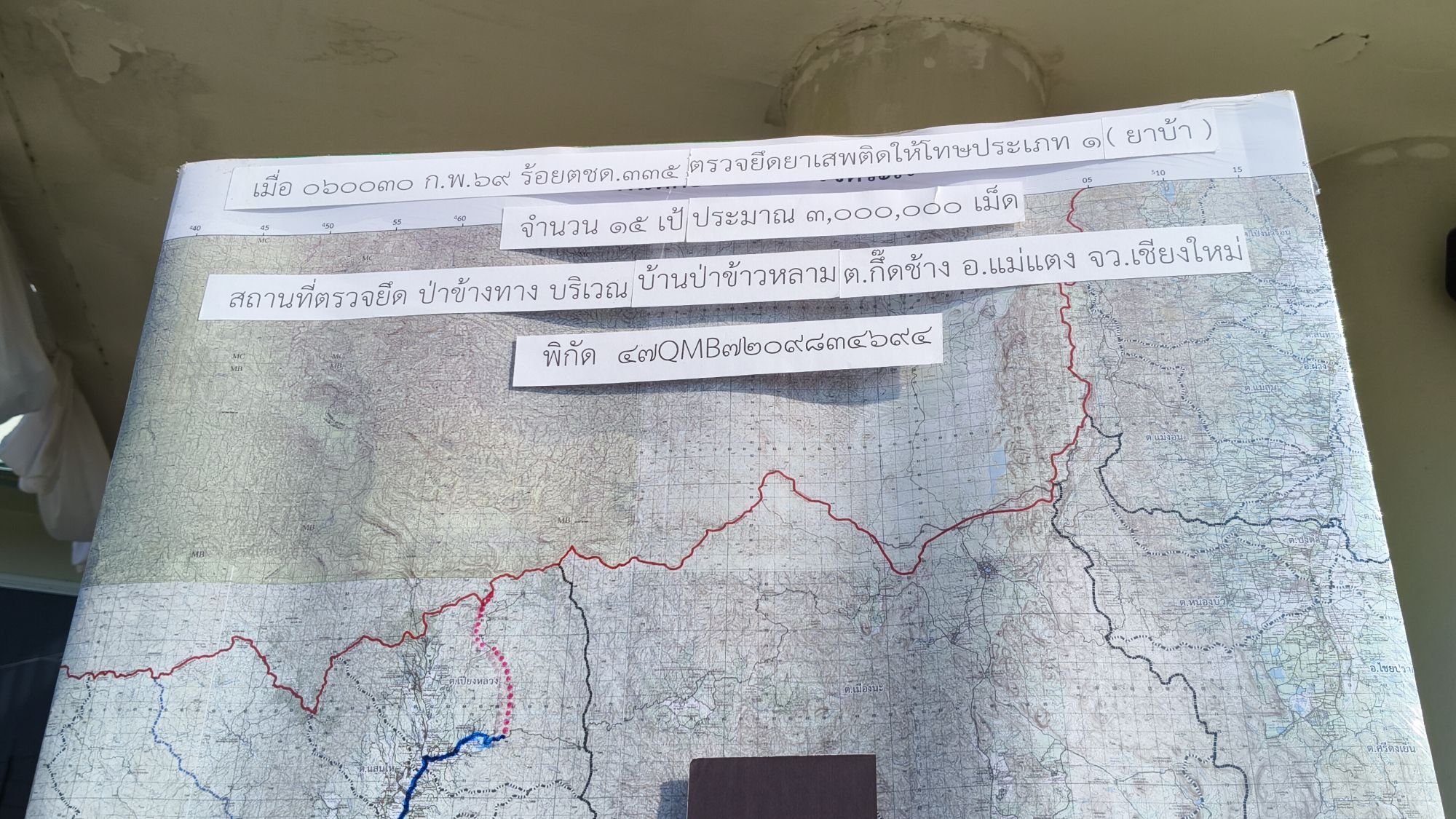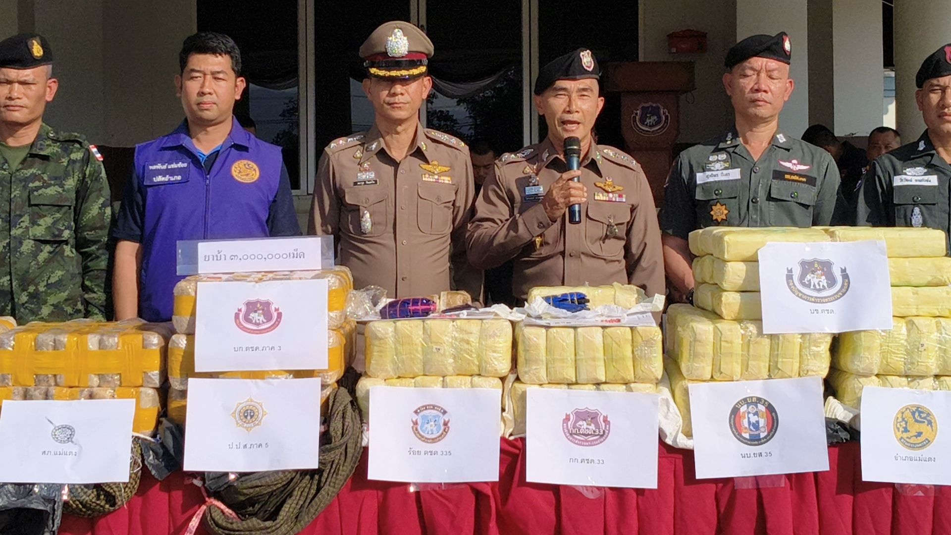 สืบเนื่องจากเมื่อวันที่ 6 กุมภาพันธ์ พ.ศ. 2569 เวลาประมาณ 00.30 น. เจ้าหน้าที่ตำรวจตระเวนชายแดนที่ 335 ได้ปฏิบัติการตรวจยึดยาเสพติดให้โทษประเภท 1 (ยาบ้า) จำนวนประมาณ 3,000,000 เม็ด ในพื้นที่ตำบลกื้ดช้าง อำเภอแม่แตง จังหวัดเชียงใหม่