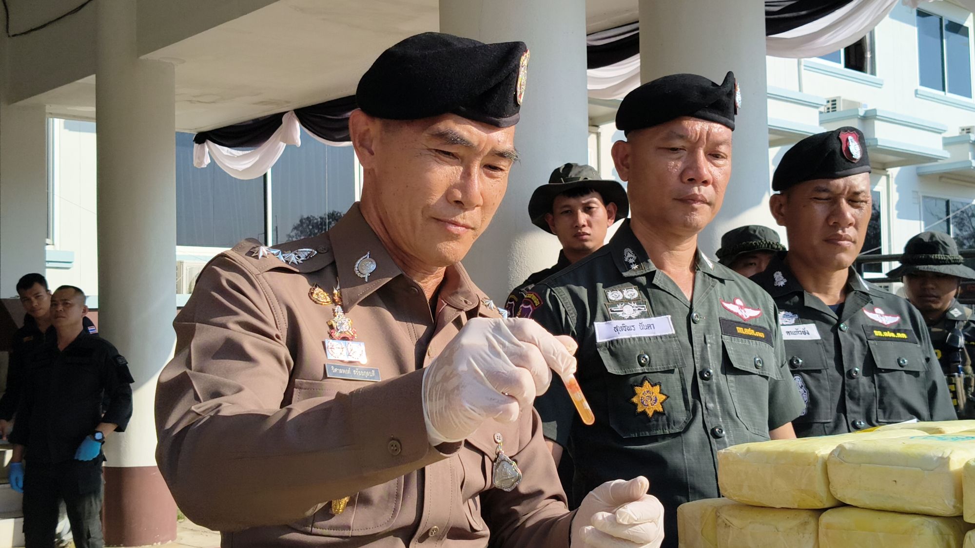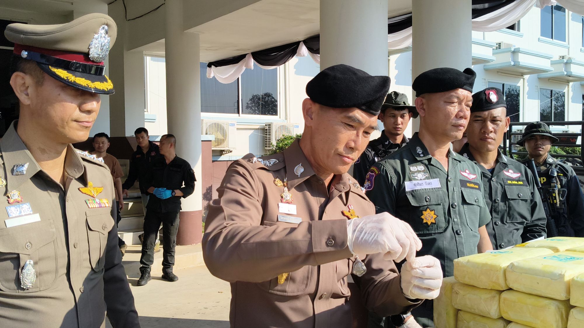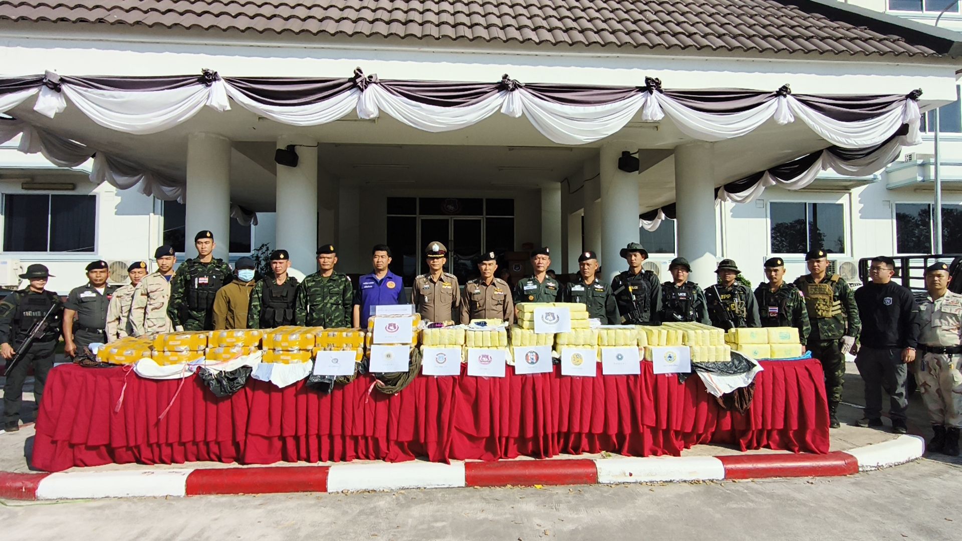 เมื่อวันที่ 6 ก.พ.69 ที่กองบังคับการตำรวจตระเวนชายแดนภาค 3 ตามนโยบายการปราบปรามยาเสพติดของ พล.ต.อ.กิตติ์รัฐ พันธุ์เพ็ชร์ ผบ.ตร., พล.ต.ท.สำราญ นวลมา รอง ผบ.ตร. (ผอ.ศอ.ปส.ตร.), พ.ต.ต.สุริยา สิงหกมล เลขาธิการ ป.ป.ส., พล.ต.ท.รุ่งโรจน์ ฐากูรปุณยสิริ ผบช.ตชด., พล.ท.วรเทพ บุญญะ มทภ.3/ผบ.นบ.ยส.35, พล.ต.ต.ปกปภพ บดีพิทักษ์ รอง ผบช.ตชด., พล.ต.สาธิต ไวยานนท์ ผบ.กกล.ผาเมือง, พล.ต.ต.วรพัฒน์ บุญมา ผบก.ตชด.ภาค 3, นายนรินทร์ สอนดิษฐ์ ผอ.ป.ป.ส.ภาค 5, พ.ต.อ.รังสิมันต์ สงเคราะห์ธรรม รอง ผบก.ตชด.ภาค 3, พ.อ.อำนาจ วชิรศักดิ์โสภานะ ผบ.ฉก.ไชยยานุภาพ, พ.ต.อ.ผดุงเกียรติ ปัณฑรนนทกะ ผกก.ตชด.33, พ.ต.อ.สราวุธ จันมะโน ผกก.สภ.แม่แตง, นายจักรพันธุ์ ทองอ่ำ นายอำเภอแม่แตง และ พ.ต.ท.สุทธิพร นันตา รอง ผกก.ตชด.33 พันตำรวจเอก วิศาลพงศ์ สร้อยกุลบดี รอง ผบก.ตชด ภาค 3 ร่วมแถลงข่าวในครั้งนี้