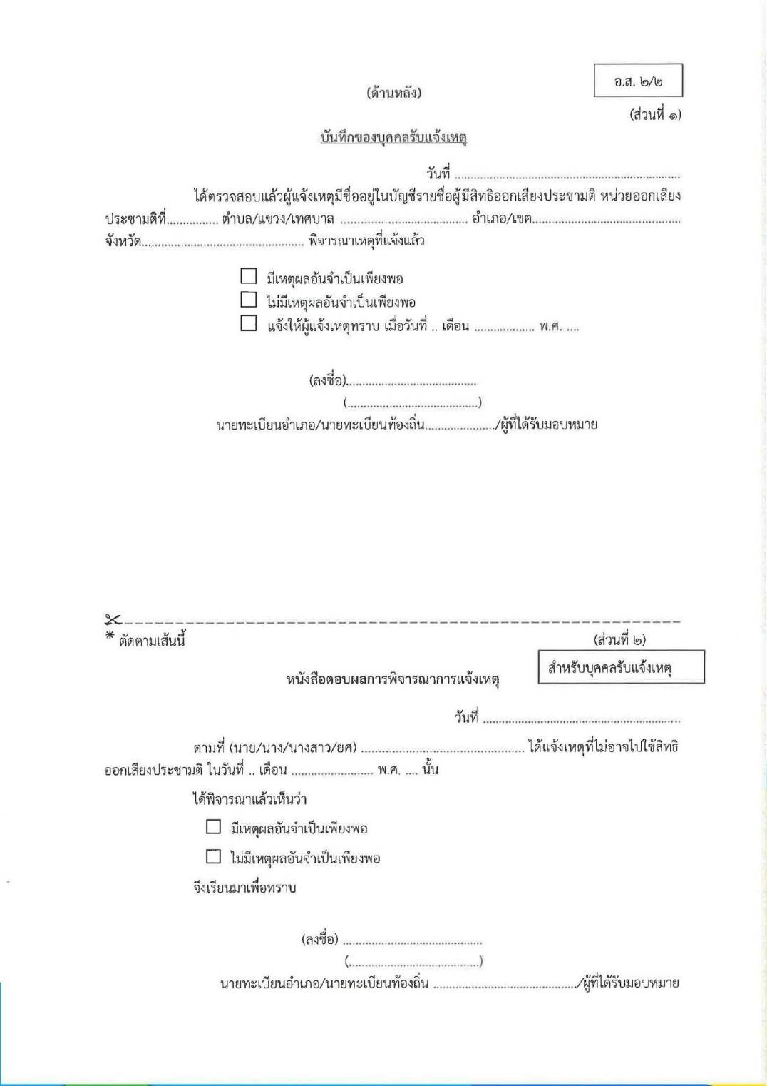 ผู้มีสิทธิออกเสียงสามารถแจ้งเหตุที่ไม่อาจไปใช้สิทธิออกเสียงได้