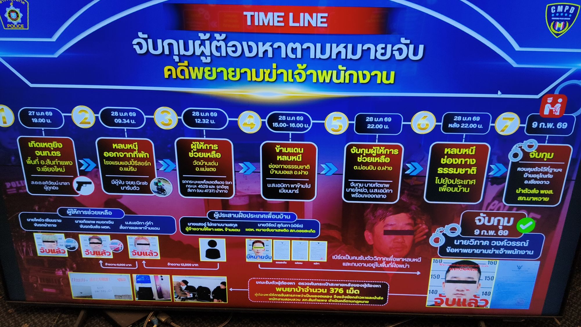 เชียงใหม่ –เมื่อวันที่ 9 กุมภาพันธ์ 2569 ตำรวจภูธรภาค 5 ภายใต้การอำนวยการของ พล.ต.ท.กฤตธาพล ยี่สาคร ผบช.ภ.5 พร้อมทีมแถลงผลงานการจับกุมผู้ต้องหาคดีสำคัญระดับ “พยายามฆ่าเจ้าพนักงาน” หลังก่อเหตุอุกอาจยิงใส่ตำรวจสายตรวจ สภ.สันกำแพง ขณะปฏิบัติหน้าที่ จนนำไปสู่การระดมกำลังไล่ล่าข้ามอำเภอ โดยการประสานงานของแม่ทัพภาคที่ 3 พลโท วรเทพ บุญญะ ประสานงานผ่านกองกำลังผาเมือง พลตรี สาธิต ไวยนนท์ ผบ.กกล.ผาเมือง ประสานงานเจ้าหน้าที่ทหารประเทศเพื่อนบ้านร่วมกันติดตามไล่ล่าจับกุมตัวนายวิภาค มาดำเนินคดี