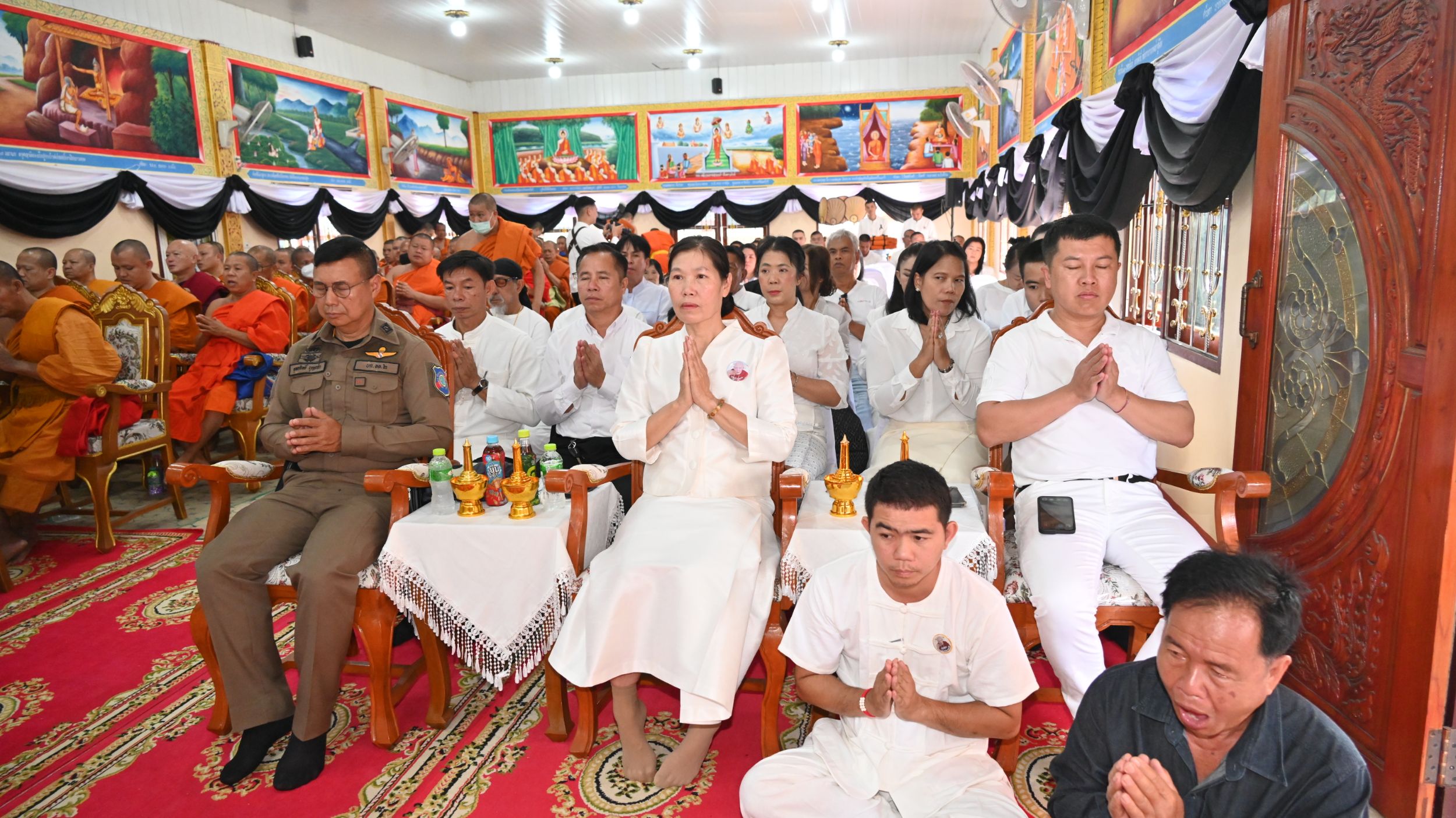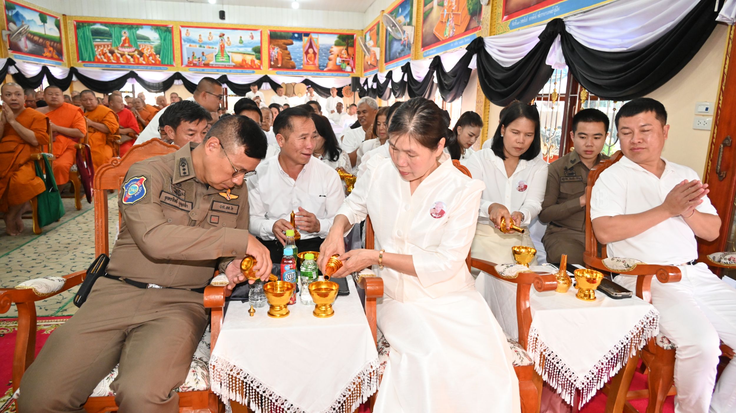 ในการนี้ พระเทพมังคลาจารย์ เจ้าคณะจังหวัดเชียงใหม่ เจ้าอาวาสวัดท่าตอน พระอารามหลวง เมตตาเป็นประธานฝ่ายสงฆ์ และนางวาสนา บุญธรรมช่วย นายอำเภอสันป่าตอง เป็นประธานฝ่ายฆราวาส โดยมีพระสงฆ์จำนวน 104 รูป ร่วมสวดพุทธมนต์ธรรมนิยามสูตร เพื่ออุทิศส่วนกุศลแด่ผู้วายชนม์