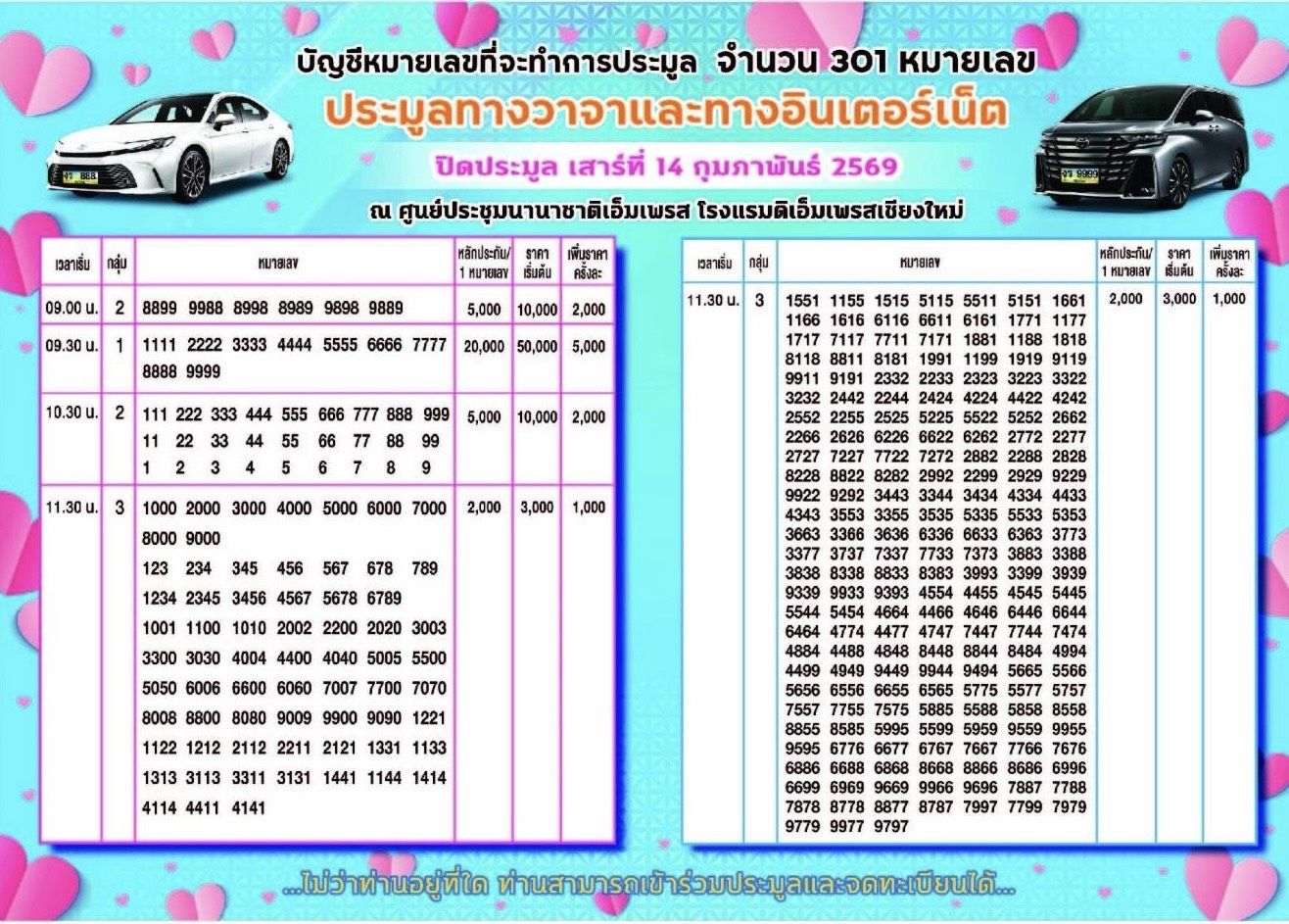 ขนส่งเชียงใหม่ชวนประมูลเลขสวยหมวด “งร” รับวาเลนไทน์ เสริมมงคล “เงินมั่งคั่ง รักมั่นคง”