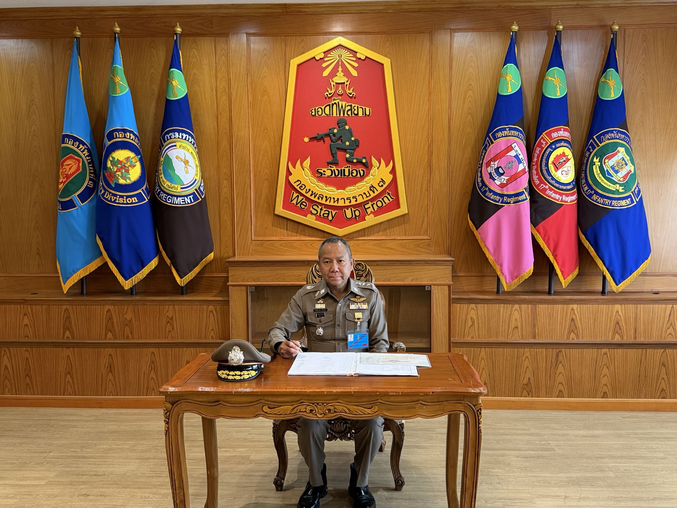วันอังคารที่ 10 กุมภาพันธ์ 2569 เวลา 13.00 น. พล.ต.ท.กฤตธาพล ยี่สาคร ผบช.ภ.5/รอง ผอ.ศูนย์ฝึกจิตอาสาพระราชทาน ภาค 3 (4) เดินทางมาตรวจเยี่ยมการฝึกอบรมหลักสูตรจิตอาสา 904 “หลักสูตรพื้นฐาน” (ภาค 3) รุ่นที่ 6/69 จำนวน 200 นาย พบ พล.อ.ต.สมบัติ วงศาโรจน์ เสธ ศฝ.จอส.ภาค 3, พ.อ.วันชัย มณีวรรณ เสธ.ผบ.พล.ร.7, พ.ต.อ.ยุทธการ เมธา ผกก.สภ.แม่ริม และ พ.ต.อ.หญิง ฐนิษฐา น้อยภู่ ผกก.ฝอ.5 บก.อก.ภ.5 ให้การต้อนรับ และรายงานผลการฝึกอบรมของผู้เข้ารับการฝึก