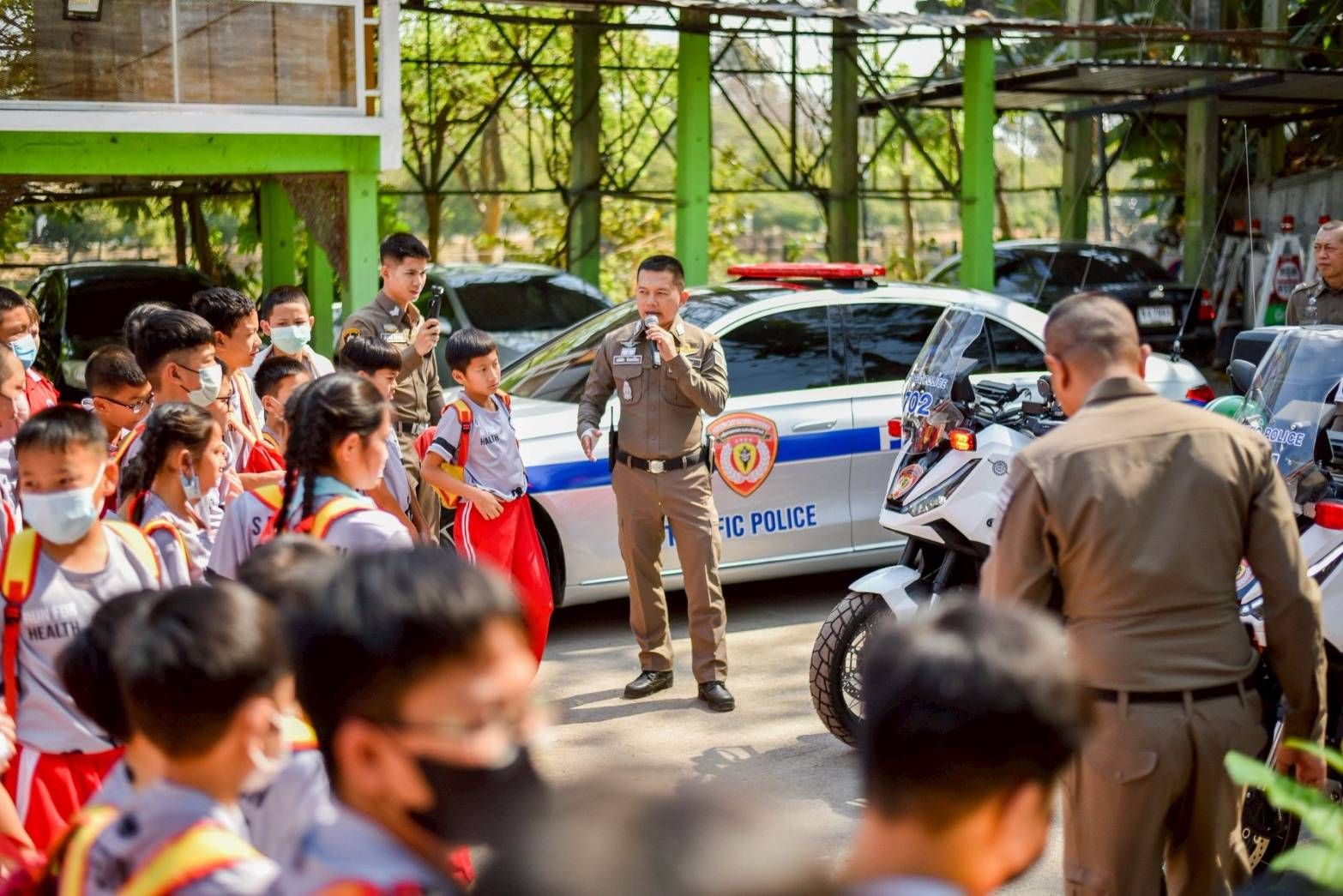 กลุ่มงานจราจร ตำรวจภูธรจังหวัดเชียงใหม่ นำโดย พ.ต.อ.มนัสชัย อินทร์เถื่อน ผู้กำกับการฯ พร้อมด้วย พ.ต.ท.สุนทร อินใจคำ, พ.ต.ท.ศักดา โชติพัฒนโภคิน รองผู้กำกับการฯ และ พ.ต.ต.วิวัฒน์ ทาระโส สารวัตรกลุ่มงานจราจรฯ ร่วมกันเปิดบ้านต้อนรับคณะครูและนักเรียนระดับชั้นประถมศึกษาปีที่ 4 – 6 จากโรงเรียนสวนเด็กสันกำแพง เมื่อวันพุธที่ 11 กุมภาพันธ์ 2569 ที่ผ่านมา เพื่อดำเนินโครงการ “เปิดโลกงานจราจร เรียนรู้ความปลอดภัยทางถนน เพื่อส่งเสริม ปลูกฝัง และสร้างฮีโร่ตัวน้อยกับตำรวจจราจรเชียงใหม่” มุ่งเน้นการสร้างวินัยจราจรและจิตสำนึกด้านความปลอดภัยให้แก่เยาวชนผ่านการเรียนรู้จากประสบการณ์จริง