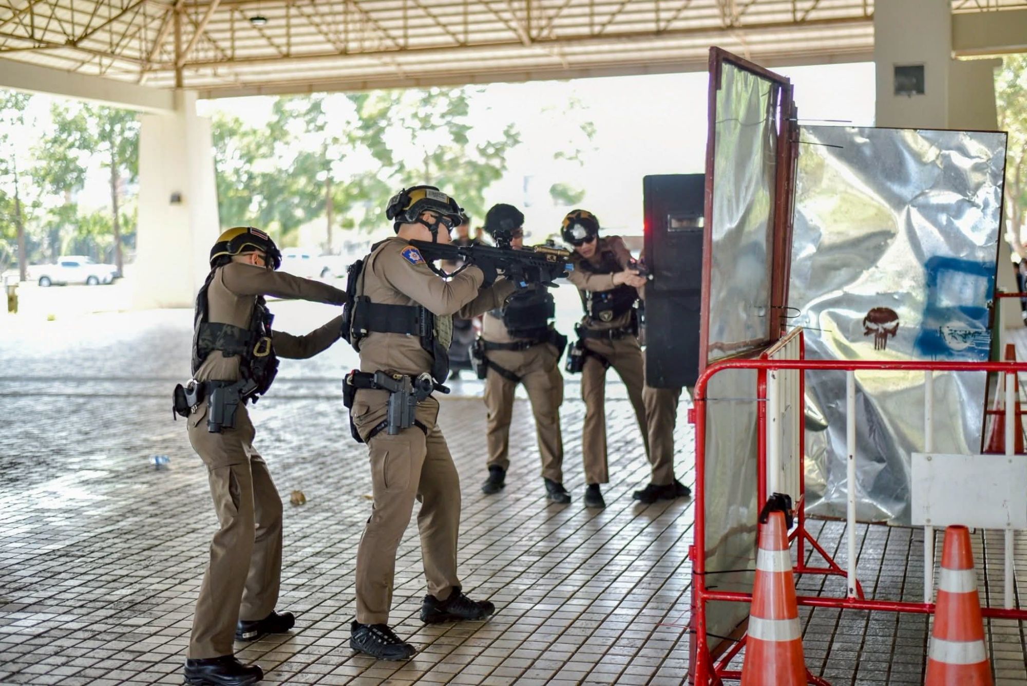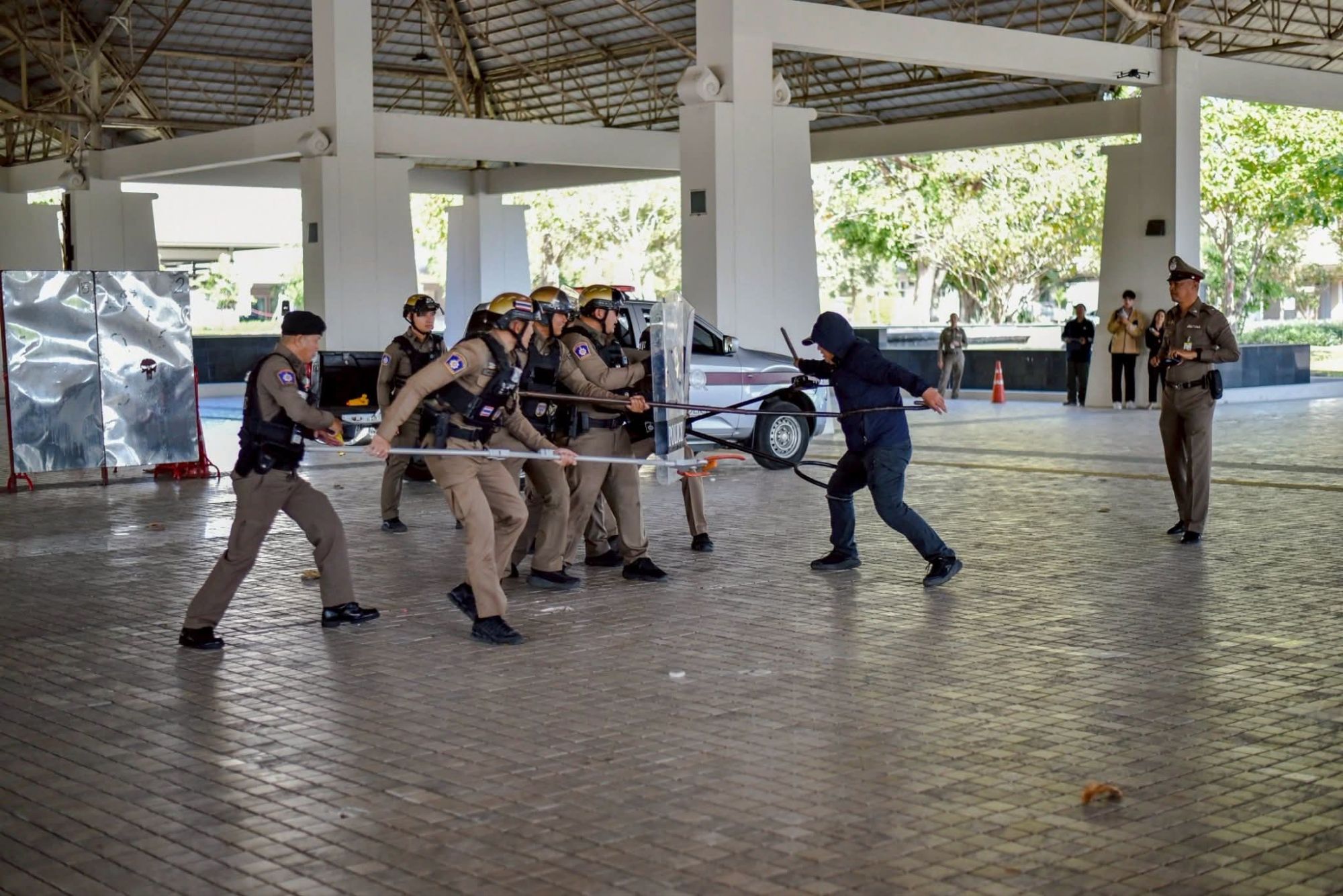 โดยการจัดการฝึกในครั้งนี้ เป็นการปฏิบัติการจำลองเหตุปล้นร้านทองและจับตัวประกัน เพื่อทดสอบความพร้อมและบูรณาการกำลังทุกหน่วยในสถานการณ์วิกฤต ผลการฝึกสามารถควบคุมตัวคนร้ายได้ครบทั้ง 3 ราย แบ่งเป็น 3 รูปแบบ ได้แก่ การยับยั้งตามหลัก Active Shooter การใช้อุปกรณ์สกัดกั้น (Net Gun) และการเข้าจู่โจมช่วยเหลือตัวประกันด้วยยุทธวิธีหน่วยพิเศษ