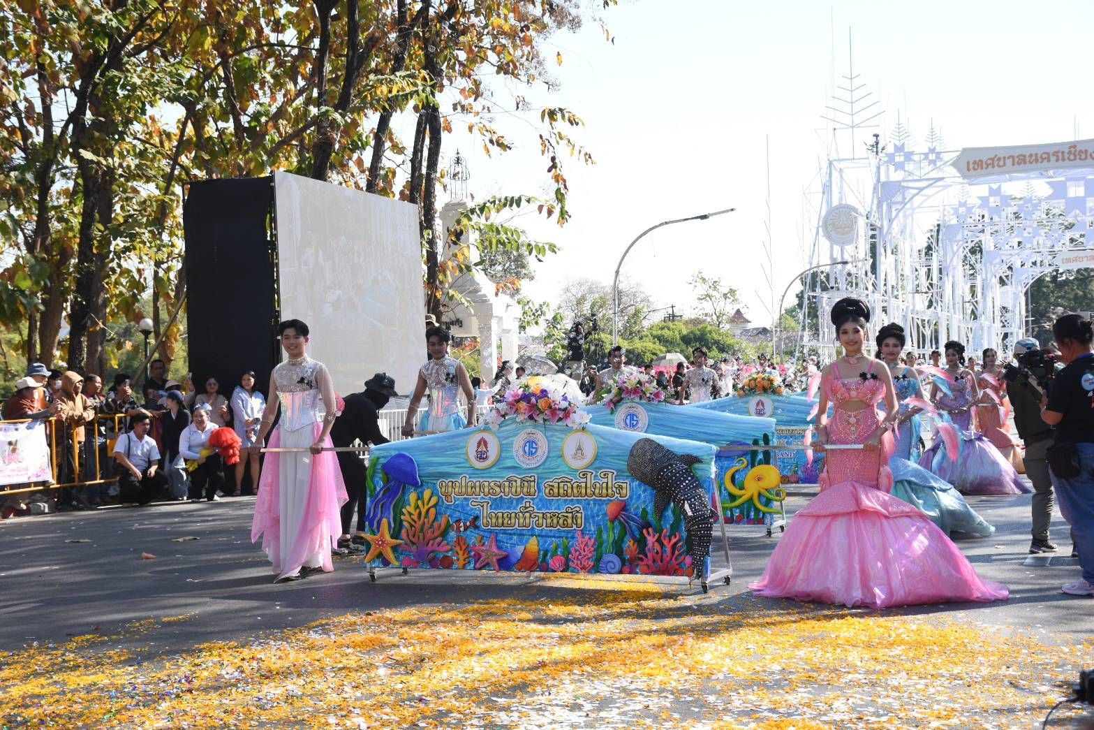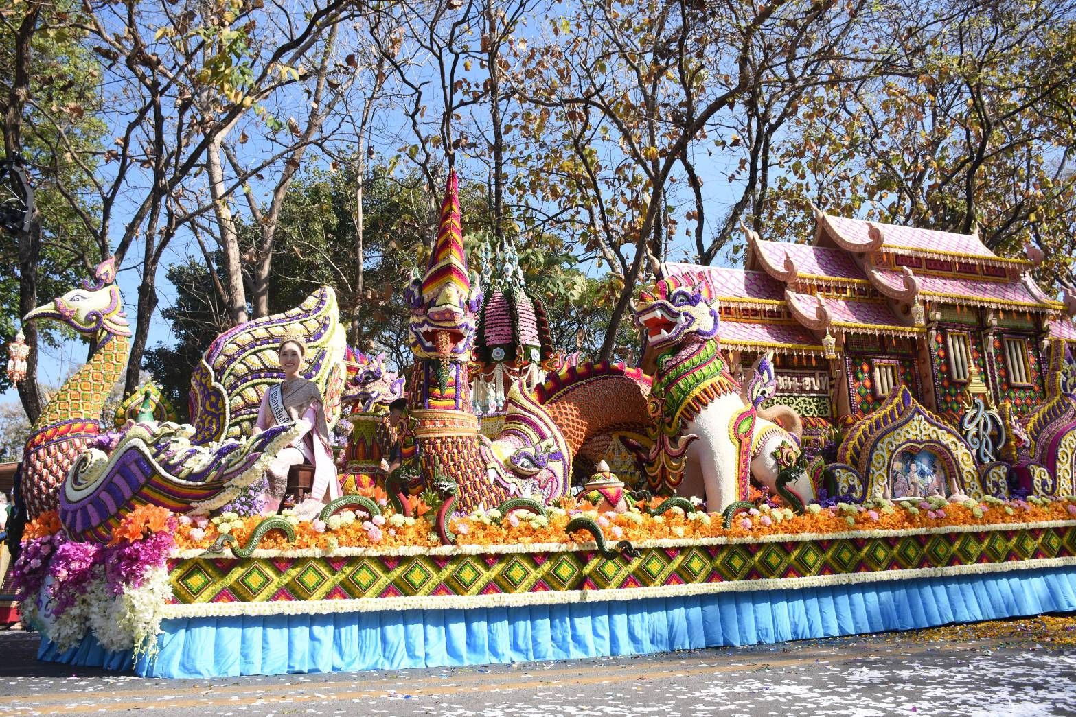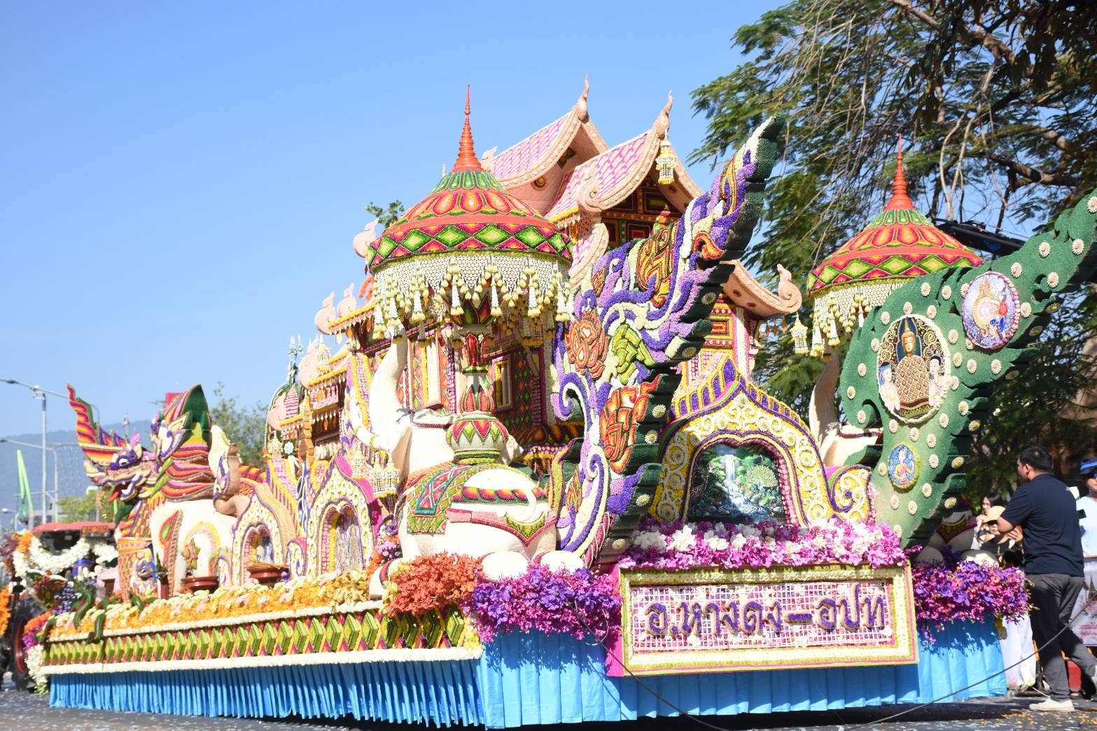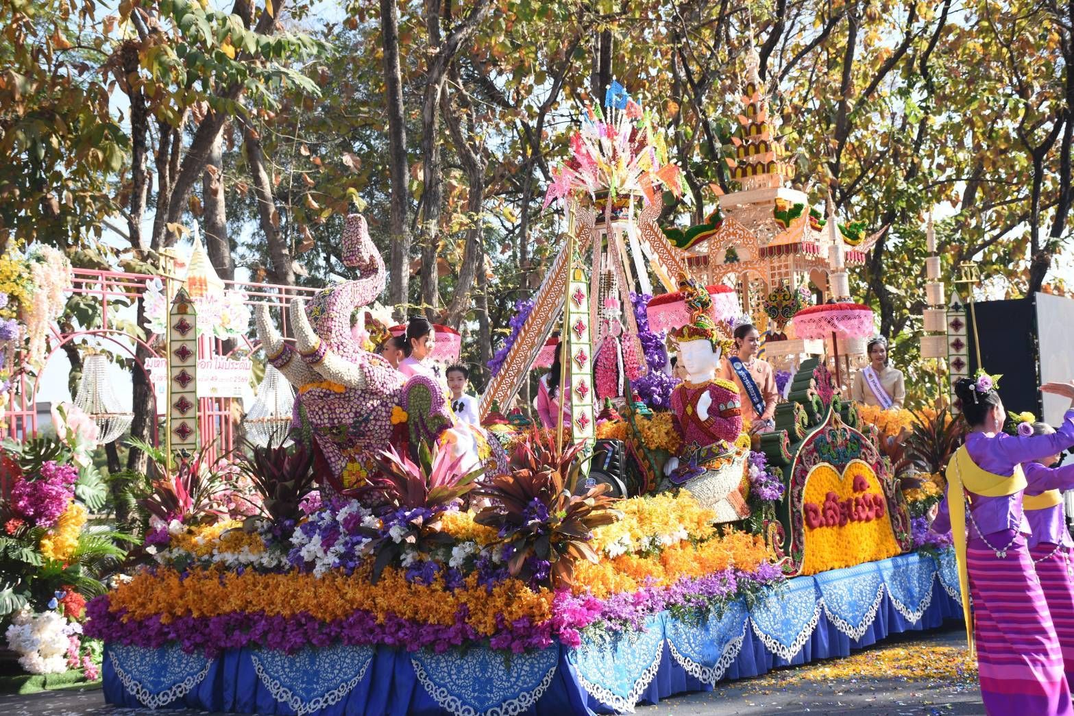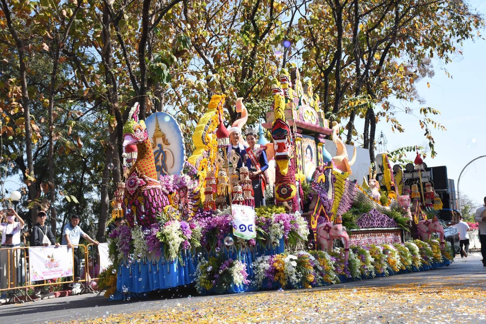 บรรยากาศภายในงานเต็มไปด้วยความมีชีวิตชีวาจากทัพนักท่องเที่ยวทั้งชาวไทยและชาวต่างชาติหลายหมื่นคนที่มารอชมไฮไลท์สำคัญอย่างขบวนรถบุปผชาติกว่า 24 ขบวนที่ตกแต่งอย่างวิจิตรบรรจงจากหน่วยงานทั้งภาครัฐและเอกชน โดยขบวนเริ่มต้นด้วยการอัญเชิญถ้วยพระราชทานสมเด็จพระกนิษฐาธิราชเจ้า กรมสมเด็จพระเทพรัตนราชสุดาฯ สยามบรมราชกุมารี เคลื่อนตัวผ่านถนนท่าแพ ข่วงประตูท่าแพ รอบคูเมือง ไปจนถึงจุดหมายที่สวนสาธารณะหนองบวกหาด