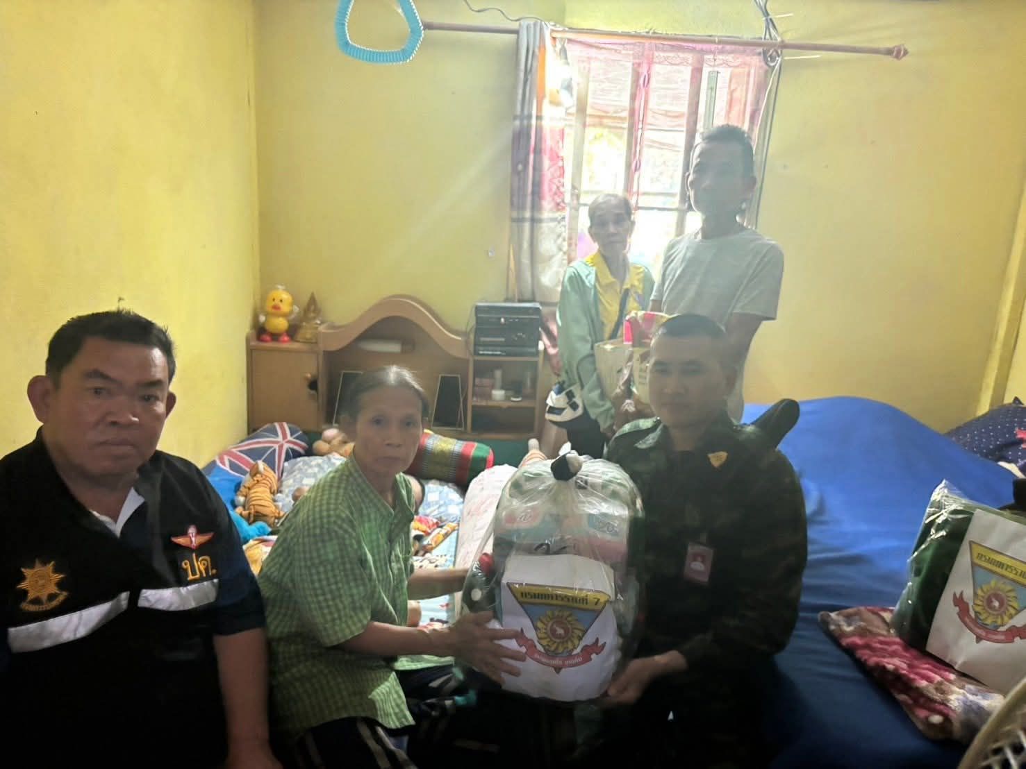 เมื่อ 16 ก.พ.69 พ.อ.ยอดชาย พวงวรินทร์ ผบ.ร.7 มอบหมายให้ ร.ท.พิทักษ์ อินตาวงศ์ ชรก.ฝกร.ร.7 ร่วมกับ เทศบาลตำบลแม่วาง ผู้นำชุมชน, กำนัน/ผู้ใหญ่บ้าน บ.กิ่วแลป่าเป้า ต.บ้านกาด อ.แม่วาง จ.เชียงใหม่ เดินทางเข้าพื้นที่ เพื่อสำรวจสภาพความเป็นอยู่ของครอบครัวพลทหาร วุฒิชัย หลวงโย บ้านเลขที่ 97/1 ม.3 ต.บ้านกาด อ.เเม่วาง จ.เชียงใหม่ ซึ่งปัจจุบันปฏิบัติหน้าที่ในพื้นที่ชายแดน กองทัพภาคที่ 2 จากการสำรวจพบว่า บ้านพักอาศัยมีสภาพชำรุดทรุดโทรม โครงสร้างบางส่วนผุพัง หลังคารั่ว ฝาผนัง และพื้นบ้านเสื่อมสภาพ ไม่มั่นคงแข็งแรง โดยครอบครัวมีฐานะค่อนข้างยากลำบาก อีกทั้งมีสมาชิกในครอบครัวคือน้องชาย อายุ 11 ปี เป็นผู้ป่วยติดเตียง จำเป็นต้องได้รับการดูแลอย่างใกล้ชิด และมีความต้องการอุปกรณ์ทางการแพทย์ขั้นพื้นฐาน รวมทั้งการปรับปรุงสภาพแวดล้อมภายในบ้านให้เหมาะสมต่อผู้ป่วย พร้อมทั้งได้มอบเครื่องอุปโภคบริโภค เพื่อบรรเทาความเดือดร้อนในเบื้องต้น