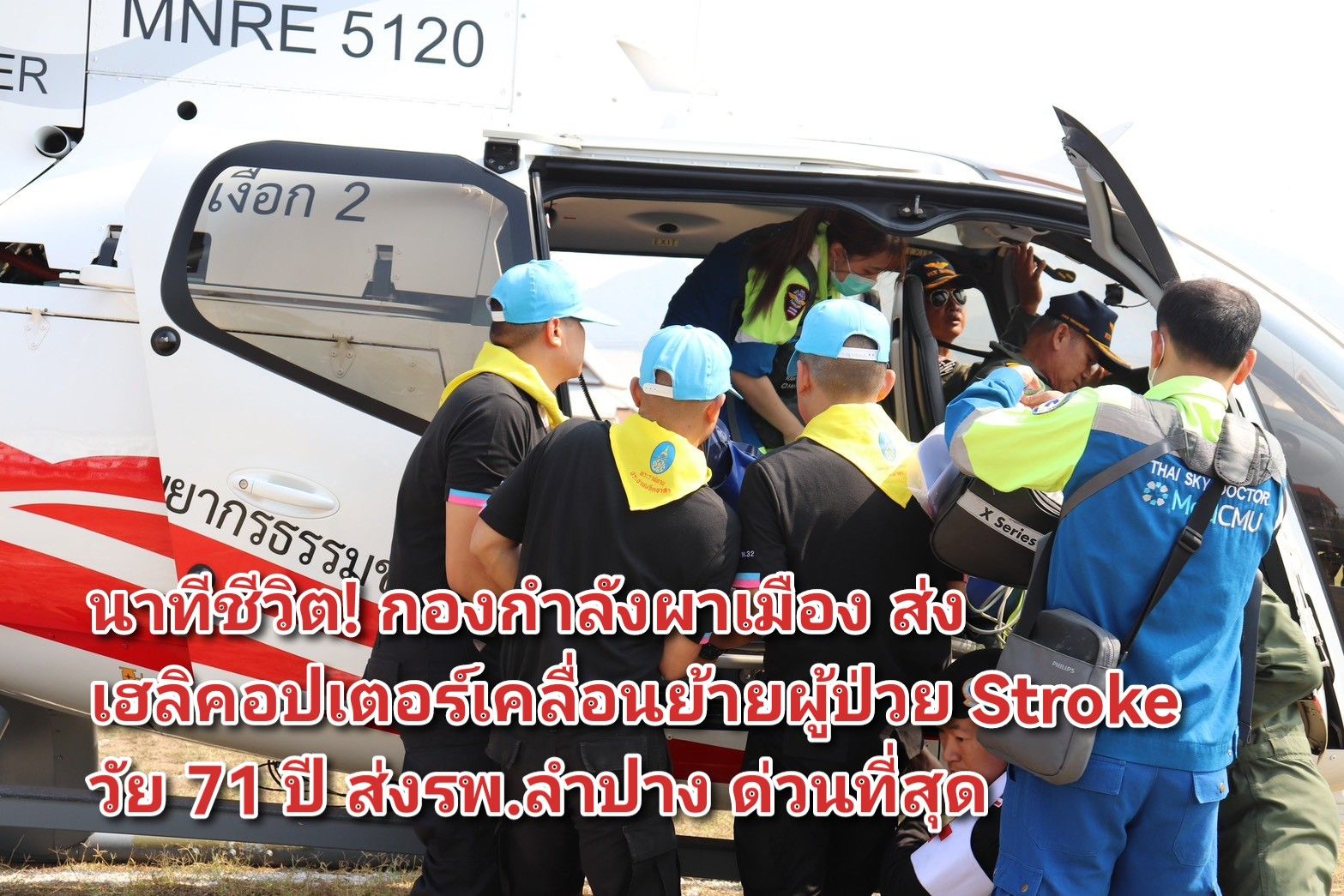 นาทีชีวิต! กองกำลังผาเมือง ส่งเฮลิคอปเตอร์เคลื่อนย้ายผู้ป่วย Stroke วัย 71 ปี ส่งรพ.ลำปาง ด่วนที่สุด
