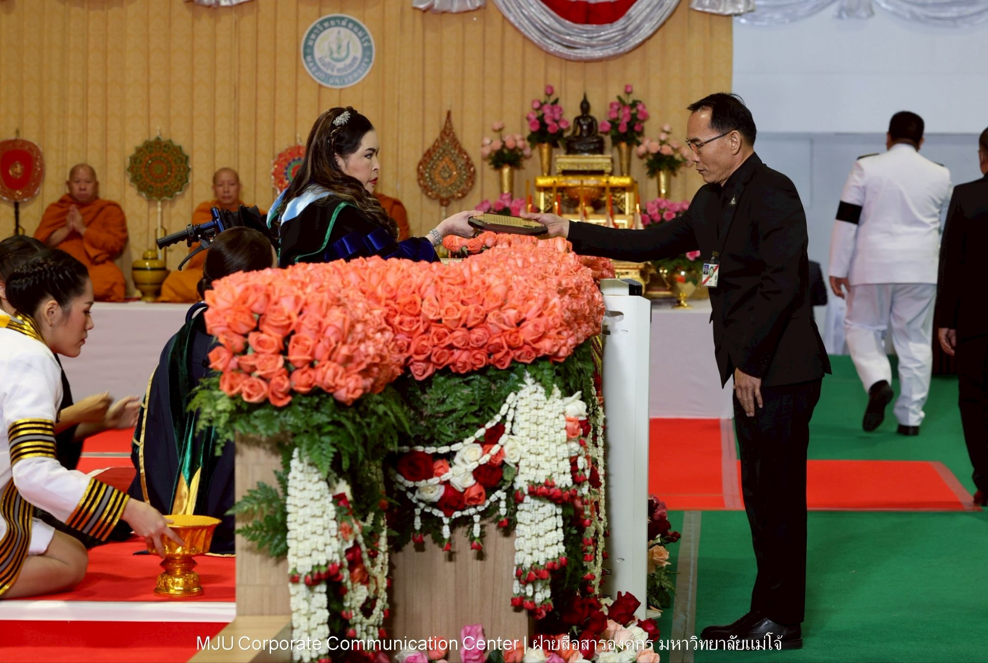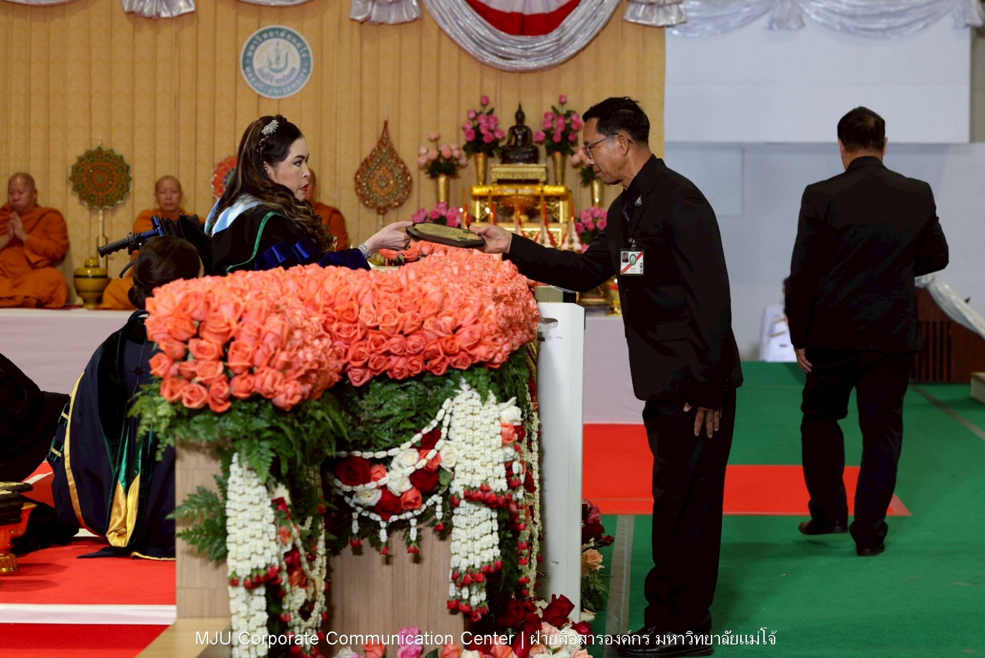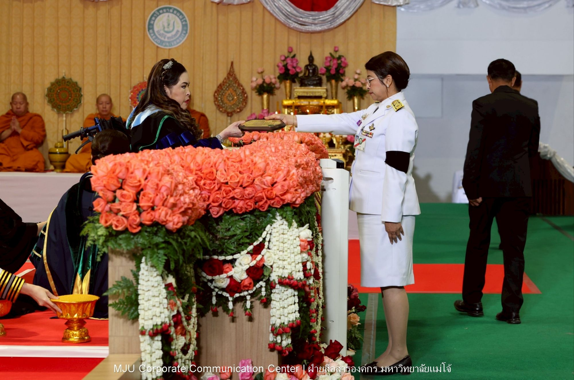 วันพฤหัสบดีที่ 19 กุมภาพันธ์ 2569 เวลา 13.38 น. พระบาทสมเด็จพระเจ้าอยู่หัว ทรงพระกรุณาโปรดเกล้าฯ ให้สมเด็จพระเจ้าน้องนางเธอ เจ้าฟ้าจุฬาภรณวลัยลักษณ์ อัครราชกุมารี กรมพระศรีสวางควัฒน วรขัตติยราชนารี เสด็จแทนพระองค์ในการพระราชทานปริญญาบัตรแก่ผู้สำเร็จการศึกษามหาวิทยาลัยแม่โจ้ ประจำปีการศึกษา 2567-2568 (ครั้งที่ 48) โดยมีบัณฑิต มหาบัณฑิต และดุษฎีบัณฑิต จำนวน 2,804 ราย แยกเป็น ระดับบัณฑิตศึกษา (ป.โท – ป.เอก) จำนวน 140 ราย ระดับปริญญาตรี 2,661 ราย และพระดุษฎีบัณฑิต/พระมหาบัณฑิต/พระบัณฑิต จำนวน 3 รูป เข้าร่วมพิธี ณ ศูนย์กีฬาเฉลิมพระเกียรติ มหาวิทยาลัยแม่โจ้ อำเภอสันทราย จังหวัดเชียงใหม่
