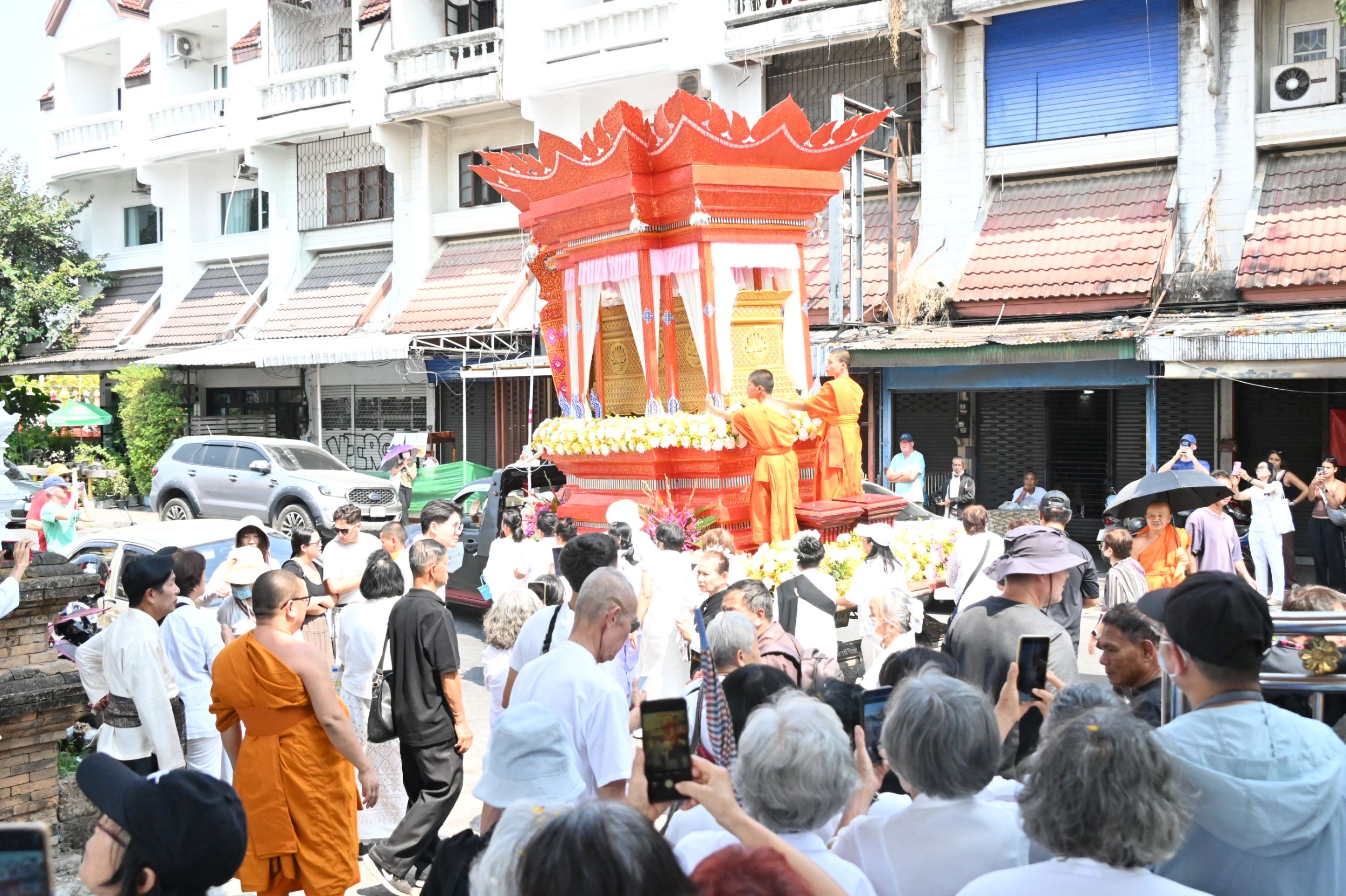 คณะสงฆ์–ศรัทธาวัดเจ็ดลิน ประกอบพิธีอาราธนาสรีรสังขาร “พระมหาวิษณุ จารุธมฺโม” ตั้งบำเพ็ญกุศล ณ วัดดอยสัพพัญญู ก่อนพิธีประชุมเพลิง 22 ก.พ. นี้