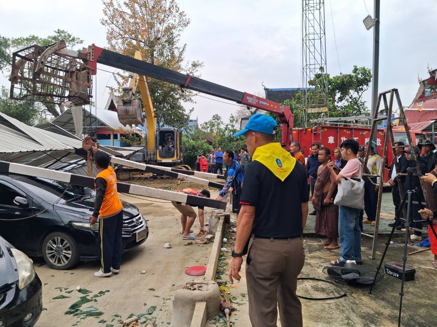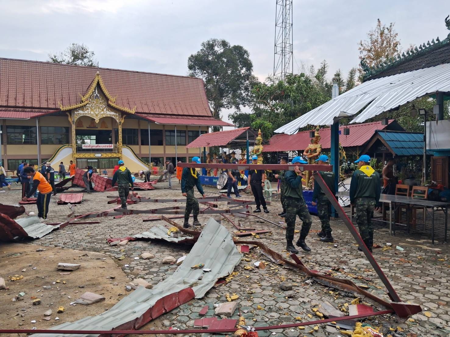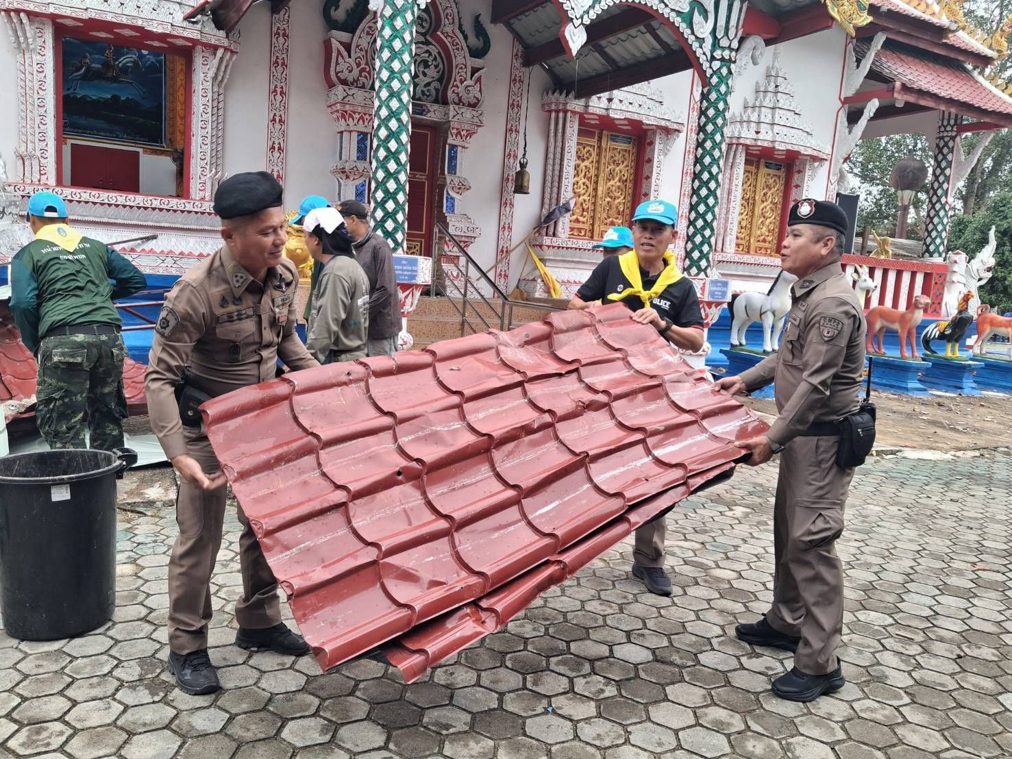 จากเหตุการณ์พายุฤดูร้อนพัดกระหน่ำในพื้นที่อำเภอพร้าว จังหวัดเชียงใหม่ เมื่อช่วงเย็นของวันที่ 21 กุมภาพันธ์ 2569 ที่ผ่านมา ส่งผลให้บ้านเรือนและศาสนสถานได้รับความเสียหายเป็นวงกว้าง ล่าสุดเมื่อวันที่ 22 กุมภาพันธ์ 2569 เวลา 09.00 น. พ.ต.อ.ชัยนันท์ ศังขานนท์ ผกก.สภ.พร้าว ได้สั่งการระดมกำลังเจ้าหน้าที่เข้าช่วยเหลือประชาชนอย่างเร่งด่วน โดยมอบหมายให้ พ.ต.ต.พิรพัฒน์ วงศ์ธีระธรรม สวป.สภ.พร้าว นำชุดตำรวจจิตอาสา พร้อมด้วยสายตรวจรถยนต์ และสายตรวจห้วยส้าน ลงพื้นที่ปฏิบัติหน้าที่ให้ความช่วยเหลือผู้ประสบภัย ณ วัดท่ามะเกี๋ยง ตำบลสันทราย เพื่อเร่งบรรเทาความเดือดร้อนในเบื้องต้น
