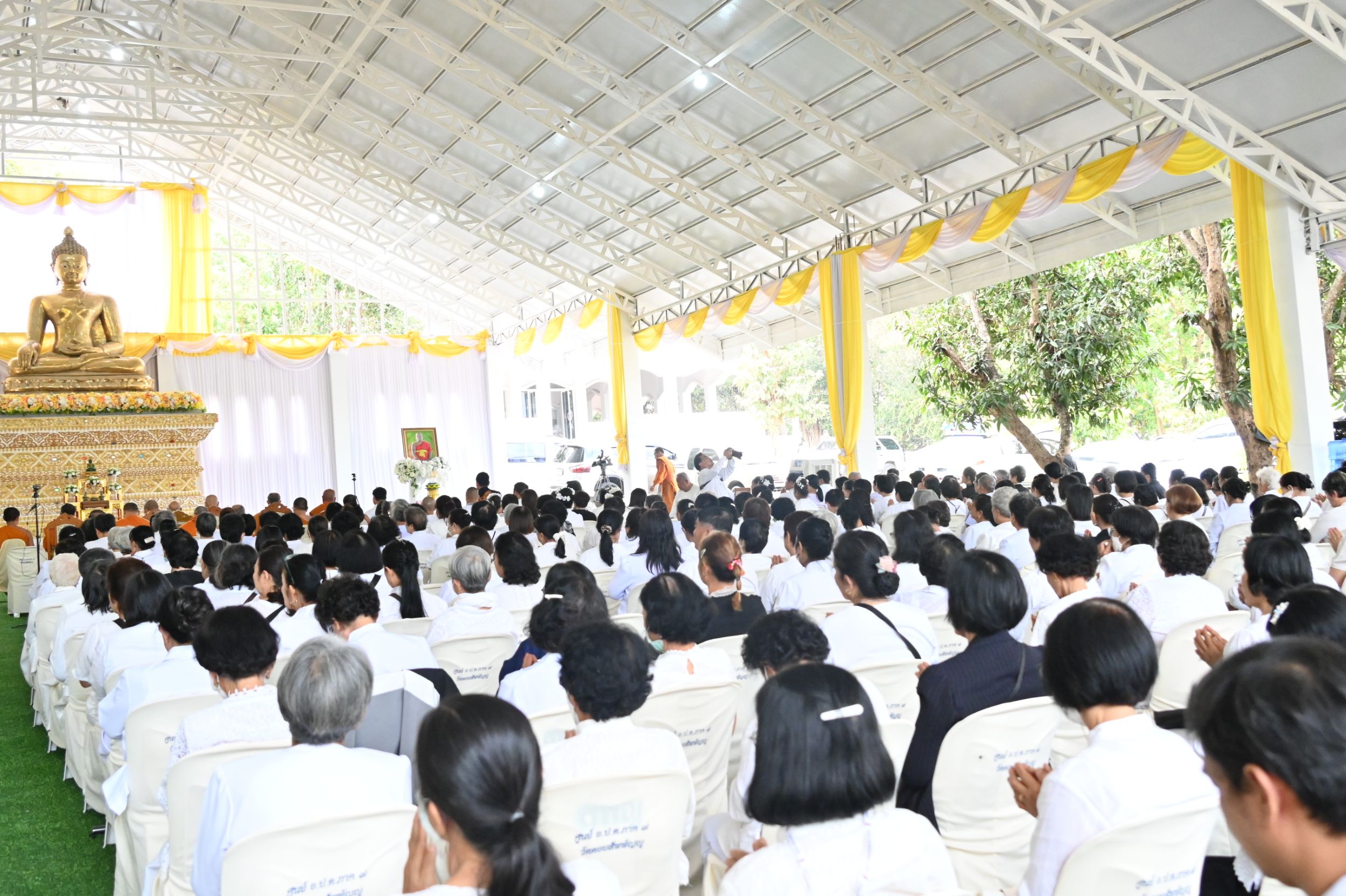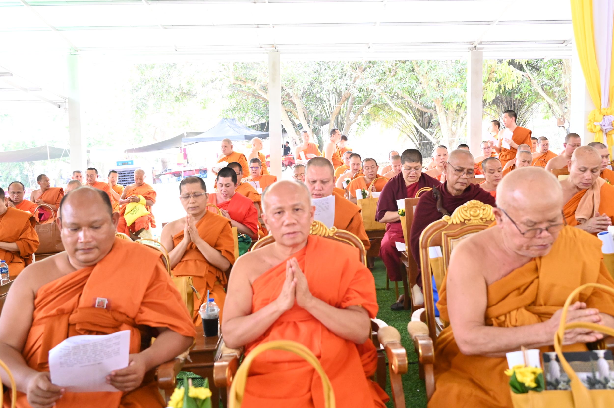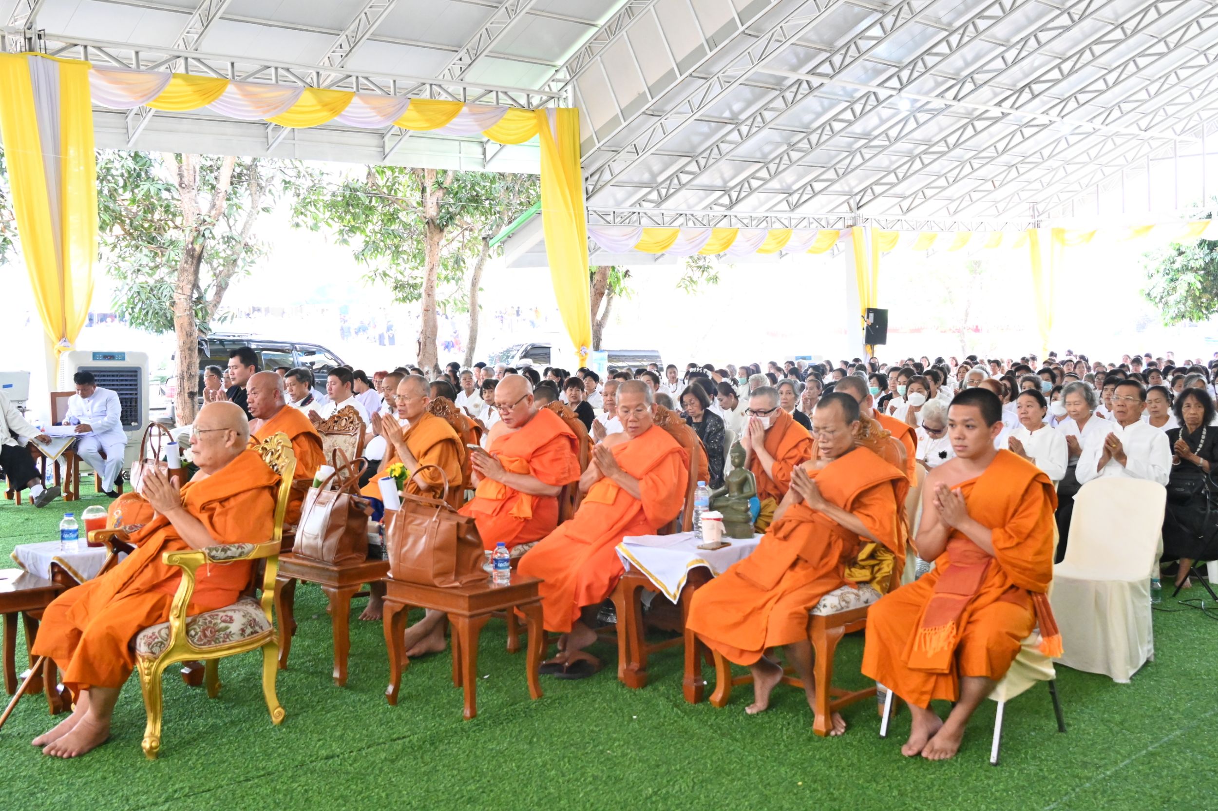 พิธีเริ่มด้วยการสวดพระพุทธมนต์ โดยคณะสงฆ์ได้พร้อมใจกันสวด “อาทิตตปริยายสูตร” พระสูตรสำคัญที่พระพุทธเจ้าทรงแสดงเรื่องความไม่เที่ยงและความเร่าร้อนแห่งกิเลส เพื่อเตือนสติให้ระลึกถึงสัจธรรมของชีวิต อันสะท้อนถึงหลักอนิจจัง ทุกขัง อนัตตา ท่ามกลางความสงบสำรวมของผู้มาร่วมงาน