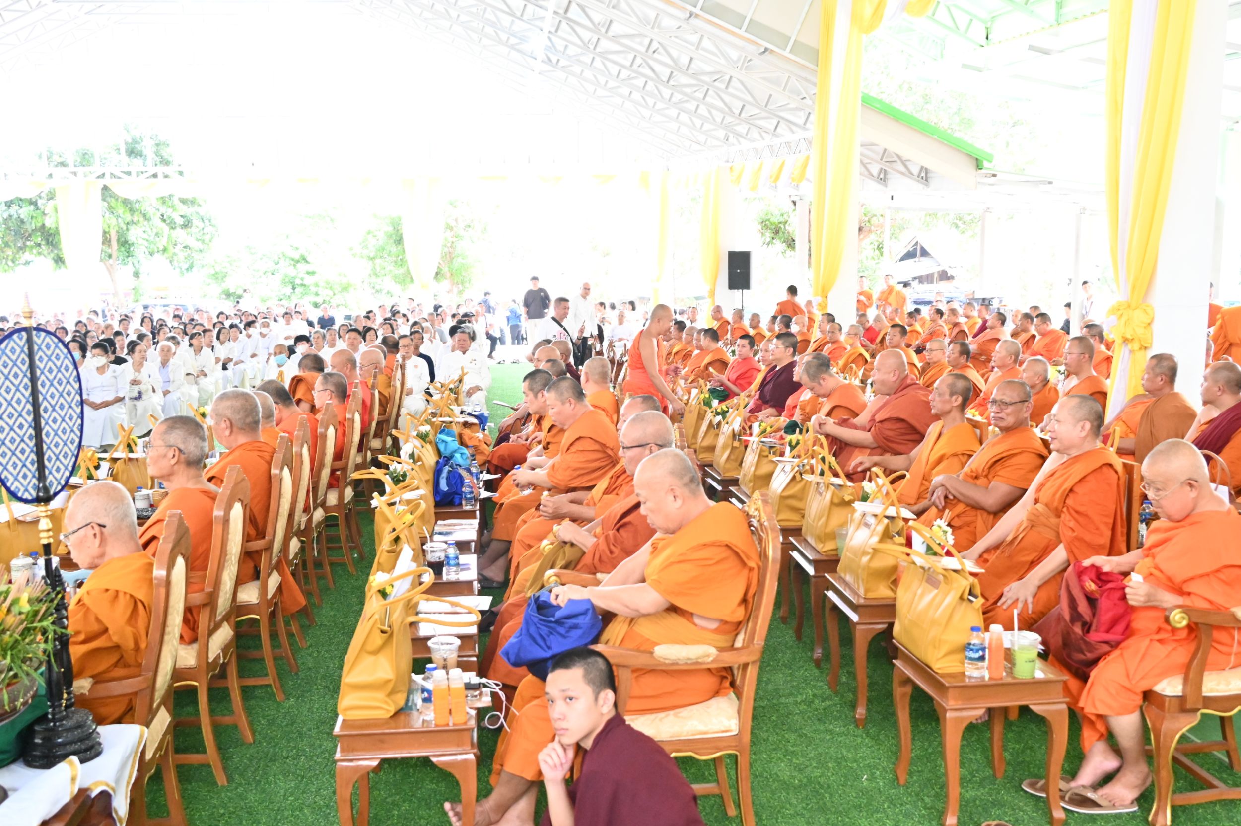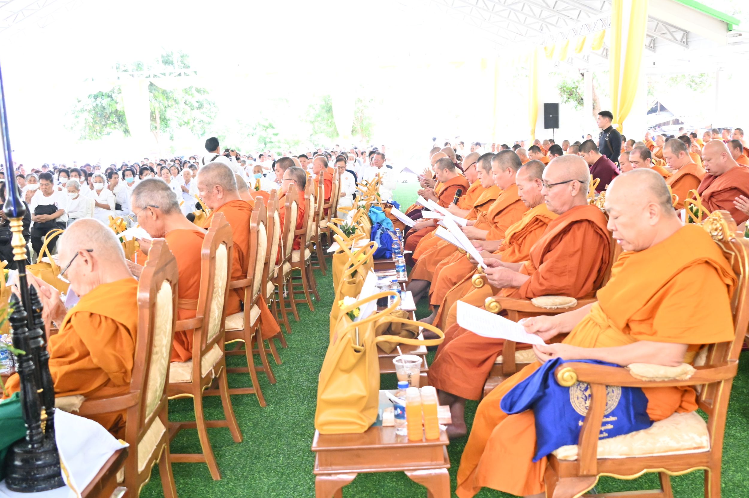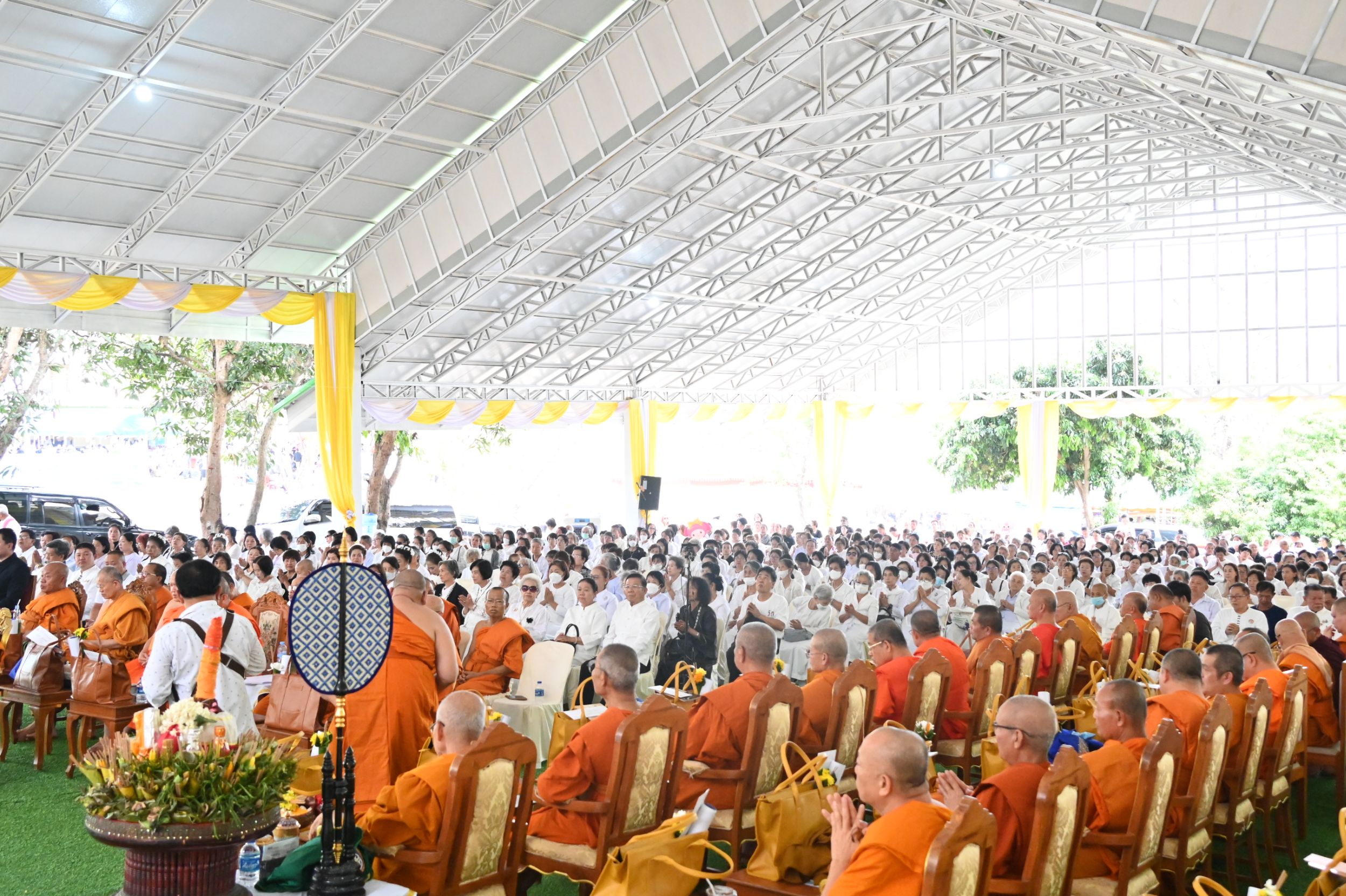 พิธีเริ่มด้วยการสวดพระพุทธมนต์ โดยคณะสงฆ์ได้พร้อมใจกันสวด “อาทิตตปริยายสูตร” พระสูตรสำคัญที่พระพุทธเจ้าทรงแสดงเรื่องความไม่เที่ยงและความเร่าร้อนแห่งกิเลส เพื่อเตือนสติให้ระลึกถึงสัจธรรมของชีวิต อันสะท้อนถึงหลักอนิจจัง ทุกขัง อนัตตา ท่ามกลางความสงบสำรวมของผู้มาร่วมงาน