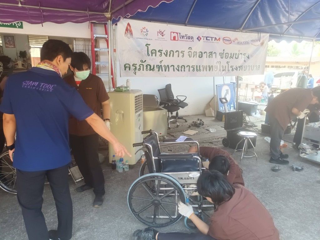 อาจารย์ศุภกาล ตุ้ยเต็มวงศ์ อาจารย์ประจำหลักสูตรเตรียมวิศวกรรมศาสตร์ วิทยาลัยเทคโนโลยีและสหวิทยาการ มหาวิทยาลัยเทคโนโลยีราชมงคลล้านนา นำนักศึกษาจัดกิจกรรมจิตอาสาลงพื้นที่ซ่อมแซมและบำรุงรักษาอุปกรณ์ทางการแพทย์ ณ โรงพยาบาลแม่ทา และโรงพยาบาลบ้านธิ จังหวัดลำพูน ตรวจเช็คและซ่อมแซมอุปกรณ์ที่ชำรุดจากการใช้งานหนัก รวมถึงอุปกรณ์ที่ขาดการบำรุงรักษาให้กลับมามีสภาพสมบูรณ์พร้อมใช้งานอีกครั้ง ประกอบด้วย อุปกรณ์ขนส่งอาหาร เสาแขวนน้ำเกลือ รถเข็นส่งอุปกรณ์ทางการแพทย์ ตู้เก็บของข้างเตียงผู้ป่วย เตียงผู้ป่วย และล้อเข็นรถเข็น รวมทั้งสิ้นกว่า 200 รายการ การดำเนินงานดังกล่าวไม่เพียงแต่ช่วยเพิ่มความปลอดภัยในการใช้งาน แต่ยังสามารถช่วยประหยัดงบประมาณแผ่นดินในการจัดซื้ออุปกรณ์ใหม่ทดแทนได้เป็นมูลค่ารวมหลายแสนบาท ระหว่างวันที่ 20 -21 กุมภาพันธ์ 2569