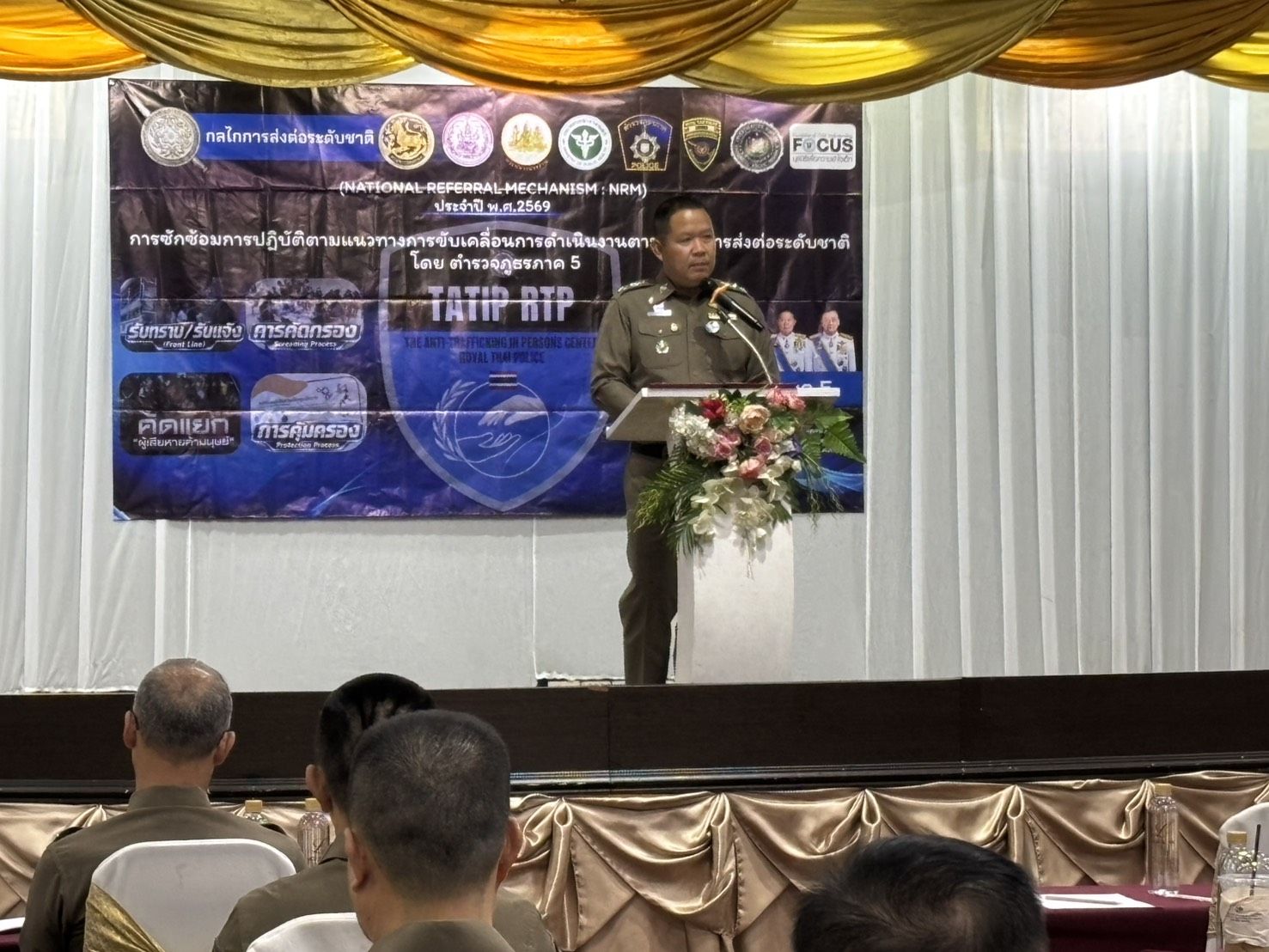 รอง ผบช.ภ.5 เป็นประธานในพิธีเปิดการประชุมเชิงปฏิบัติการซักซ้อมการปฏิบัติการตามกลไกการส่งต่อระดับชาติ (National Referral Mechanism : NRM) ตำรวจภูธรจังหวัดเชียงราย ณ ห้องประชุม รร.ลักษวรรณ จ.เชียงราย
