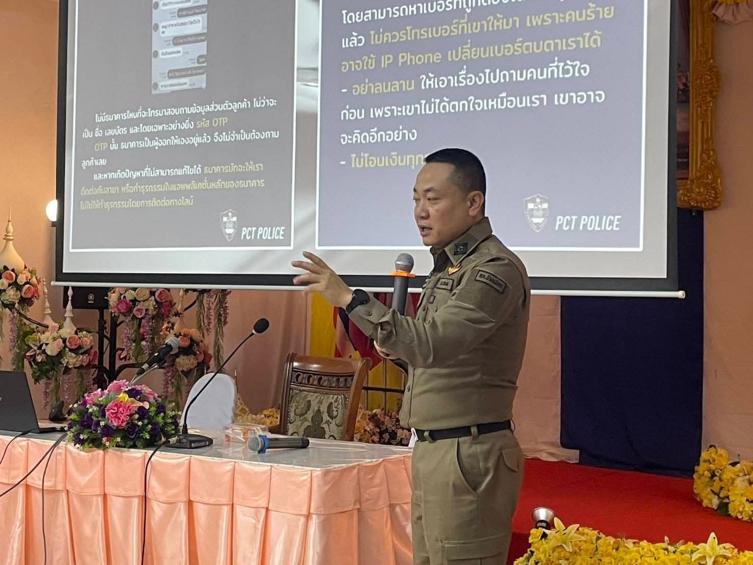 บรรยากาศเต็มไปด้วยความอบอุ่นและสาระสำคัญในหัวข้อ “รู้ทันมิจฉาชีพ ภัยใกล้ตัวในยุคดิจิทัล ผู้สูงวัยควรรู้ก่อนตกเป็นเหยื่อ” โดยทางเจ้าหน้าที่ตำรวจได้ถ่ายทอดกลโกงของมิจฉาชีพในรูปแบบต่าง ๆ ที่มักจะใช้หลอกล่อกลุ่มผู้สูงอายุ ไม่ว่าจะเป็นการหลอกให้โอนเงิน การปลอมตัวเป็นเจ้าหน้าที่ หรือกลวิธีหลอกล่อทางออนไลน์ เพื่อให้คุณพ่อคุณแม่และผู้สูงวัยทุกท่านมีภูมิคุ้มกันทางดิจิทัล ไม่ตกเป็นเหยื่อของกลุ่มคนร้าย และสามารถใช้ชีวิตในยุคเทคโนโลยีได้อย่างมีความสุขและปลอดภัย ซึ่งกิจกรรมครั้งนี้ได้รับความสนใจและการตอบรับอย่างดีเยี่ยมจากผู้เข้าร่วมโครงการทุกคน “ไม่เชื่อ ไม่รีบ ไม่โอน” หากมีเบอร์แปลกหรือข้อความน่าสงสัย ให้ปรึกษาลูกหลานหรือเจ้าหน้าที่ตำรวจทันที.
