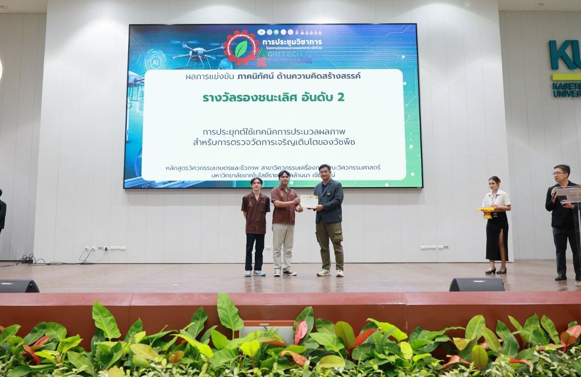 ผศ.อนุวัตร ศรีนวล, ดร.พฤทธิ์ เนตรสว่าง, ผศ.อัจฉรา จันทร์ผง และ ผศ.ดร.นิลวรรณ ไชยทนุ นำทีมนักศึกษาหลักสูตรวิศวกรรมเกษตรและชีวภาพ สาขาวิศวกรรมเครื่องกล คณะวิศวกรรมศาสตร์ มหาวิทยาลัยเทคโนโลยีราชมงคลล้านนา เข้าร่วมการแข่งขัน “โครงงานวิศวกรรมเกษตรแห่งประเทศไทยครั้งที่ 32 ประจำปี 2569” ระหว่างวันที่ 19-20 กุมภาพันธ์ 2569 ณ คณะวิศวกรรมศาสตร์ มหาวิทยาลัยเกษตรศาสตร์ วิทยาเขตกำแพงแสน อำเภอกำแพงแสน จังหวัดนครปฐม โดยมีสถาบันที่เปิดสอนในกลุ่มวิศวกรรมเกษตร เข้าร่วมจำนวน 12 สถาบันจากทั่วประเทศ ซึ่งเป็นเวทีสำหรับนำผลงานวิชาการของนักศึกษาทั้งภาคบรรยายและภาคนิทัศน์ อีกทั้งจัดการแข่งขันทางด้านทักษะทางวิศวกรรม ในงานประชุมวิชาการในครั้งนี้หลักสูตรวิศวกรรมเกษตรและชีวภาพซึ่งนักศึกษาคณะวิศวกรรมศาสตร์สามารถคว้ารางวัลทั้งหมด จำนวน 3 รางวัล ดังนี้