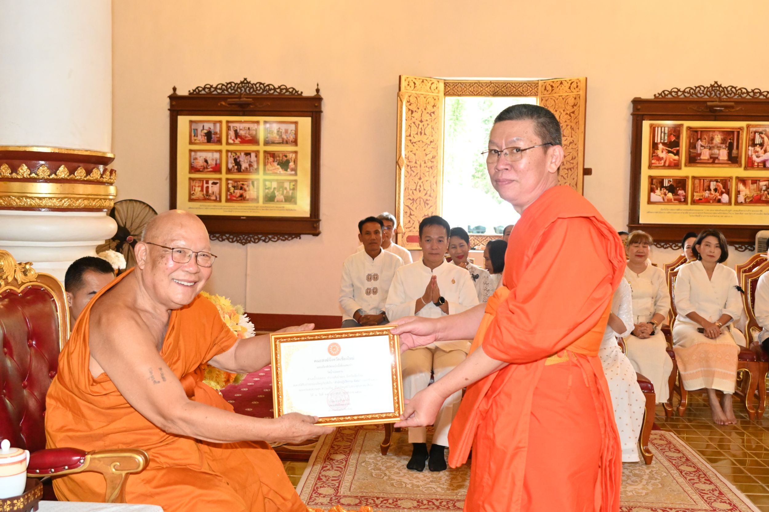 ขณะเดียวกัน นายศิวะ ธมิกานนท์ รองผู้ว่าราชการจังหวัดเชียงใหม่ เป็นประธานฝ่ายฆราวาส มอบเกียรติบัตรประกาศเกียรติคุณแก่หมู่บ้านรักษาศีล 5 ดีเด่น จังหวัดเชียงใหม่ เพื่อเชิดชูชุมชนต้นแบบที่ยึดมั่นในหลักธรรมคำสอนและส่งเสริมคุณธรรมจริยธรรมในสังคม
