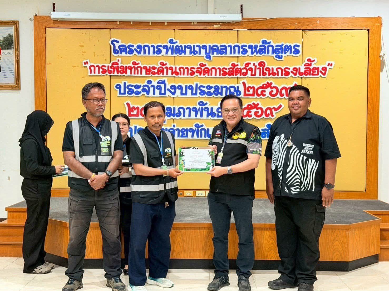 ในโอกาสนี้ นายอนุพงษ์ นวลแพง หัวหน้ากลุ่มงานบริหารรักษาความปลอดภัย ความสะอาด และจราจร ได้รับมอบหมายจากผู้อำนวยการองค์การบริหารไนท์ซาฟารี ให้ร่วมเป็นวิทยากรแบ่งปันประสบการณ์และองค์ความรู้ในการอบรม ซึ่งเนื้อหาครอบคลุมทั้งภาคทฤษฎีและภาคปฏิบัติอย่างเข้มข้น ตั้งแต่การศึกษาพฤติกรรมสัตว์ (Animal Behavior) การจัดสภาพแวดล้อมในกรงเลี้ยงให้มีความหลากหลายและสอดคล้องกับธรรมชาติของสัตว์แต่ละชนิด (Environmental Enrichment) ไปจนถึงการจัดการสุขภาพสัตว์เบื้องต้นและการบริหารจัดการความปลอดภัยภายในพื้นที่จัดแสดง