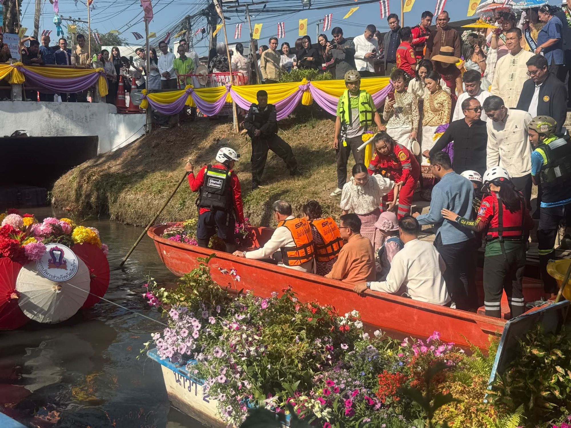 วันที่ 27 ก.พ. 2569 เวลา 09.00 น. ที่ท่าน้ำคลองแม่ข่า วัดเทพนิมิต ตำบลป่าแดด อำเภอเมืองเชียงใหม่ จังหวัดเชียงใหม่ นายรัฐพล นราดิศร ผู้ว่าราชการจังหวัดเชียงใหม่ ประธานเปิดงาน “ฮอมปอยบุปผชาติแม่ข่างาม…ที่ป่าแดด” ครั้งที่ ๘ ประจำปี ๒๕๖๙ โดยมีตัวแทนจากภาครัฐ ภาคเอกชน องค์กรปกครองส่วนท้องถิ่น จิตอาสา และประชาชนชาวเชียงใหม่ เข้าร่วมงานอย่างคึกคัก ท่ามกลางบรรยากาศความสวยงามของขบวนเรือที่ตกแต่งด้วยดอกไม้นานาพันธุ์