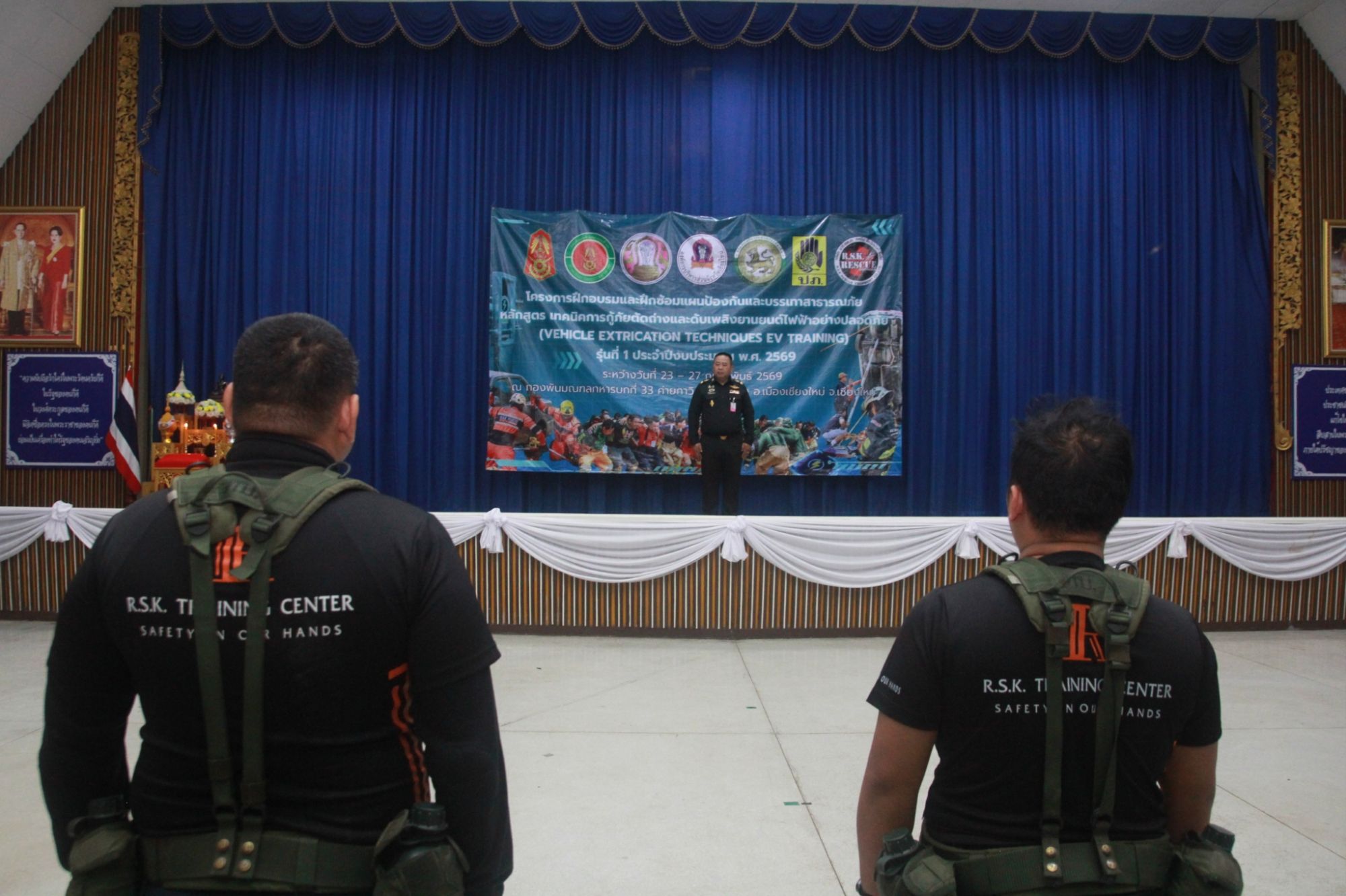 เมื่อวันที่ 27 กุมภาพันธ์ 2569 เวลา 15.00 น. ณ สโมสรกาวิละ ค่ายกาวิละ อำเภอเมือง จังหวัดเชียงใหม่ พลตรี ธำรงศักดิ์ บุญทักษ์ ผู้บัญชาการมณฑลทหารบกที่ 33 ให้เกียรติเป็นประธานในพิธีมอบใบประกาศนียบัตรและปิดการฝึกอบรมหลักสูตร “เทคนิคการกู้ภัยตัดถ่าง และการดับเพลิงยานยนต์ไฟฟ้า (EV) อย่างปลอดภัย” รุ่นที่ 1 ประจำปี 2569 โดยมี พันเอก วารินทร์ คธาพันธ์ ผู้บังคับกองพันมณฑลทหารบกที่ 33 พร้อมด้วยคณะผู้บริหารจากองค์การบริหารส่วนจังหวัดเชียงใหม่เข้าร่วมในพิธี