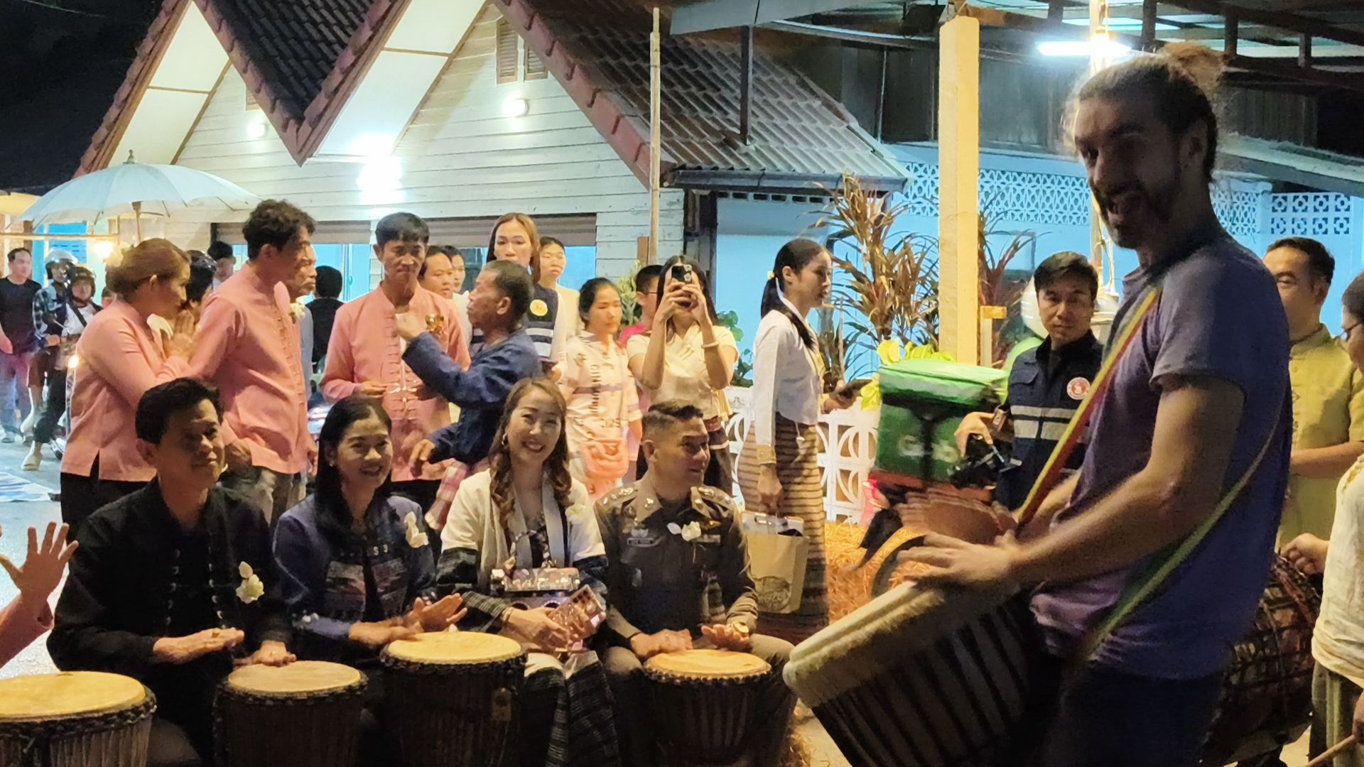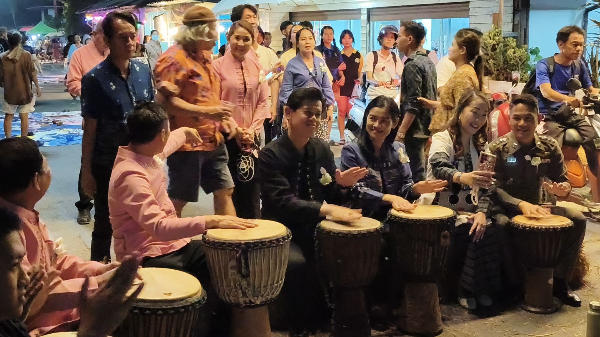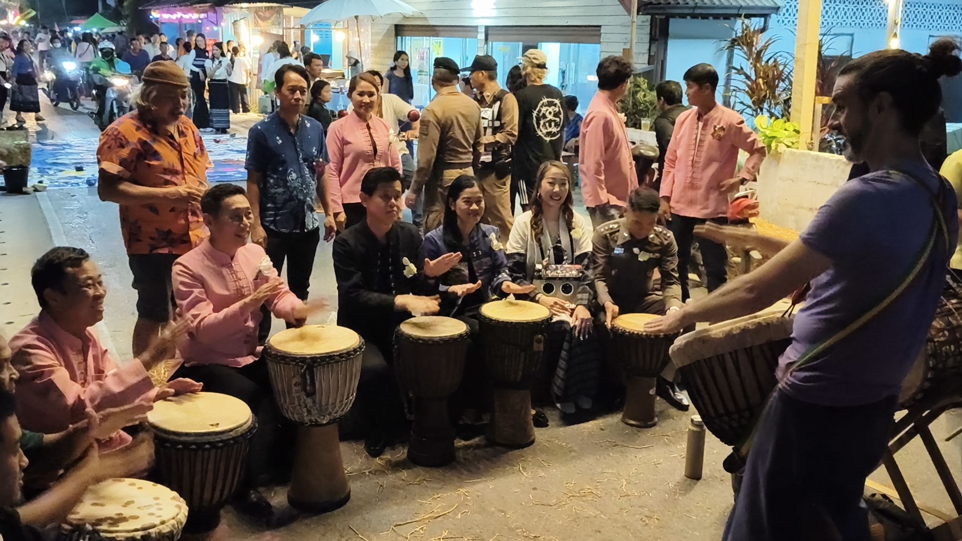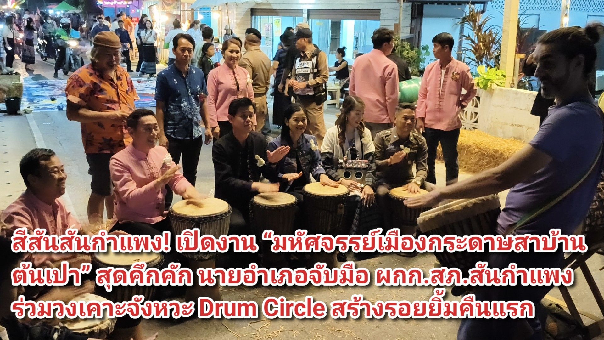 สีสันสันกำแพง! เปิดงาน “มหัศจรรย์เมืองกระดาษสาบ้านต้นเปา” สุดคึกคัก นายอำเภอจับมือ ผกก.สภ.สันกำแพง ร่วมวงเคาะจังหวะ Drum Circle สร้างรอยยิ้มคืนแรก