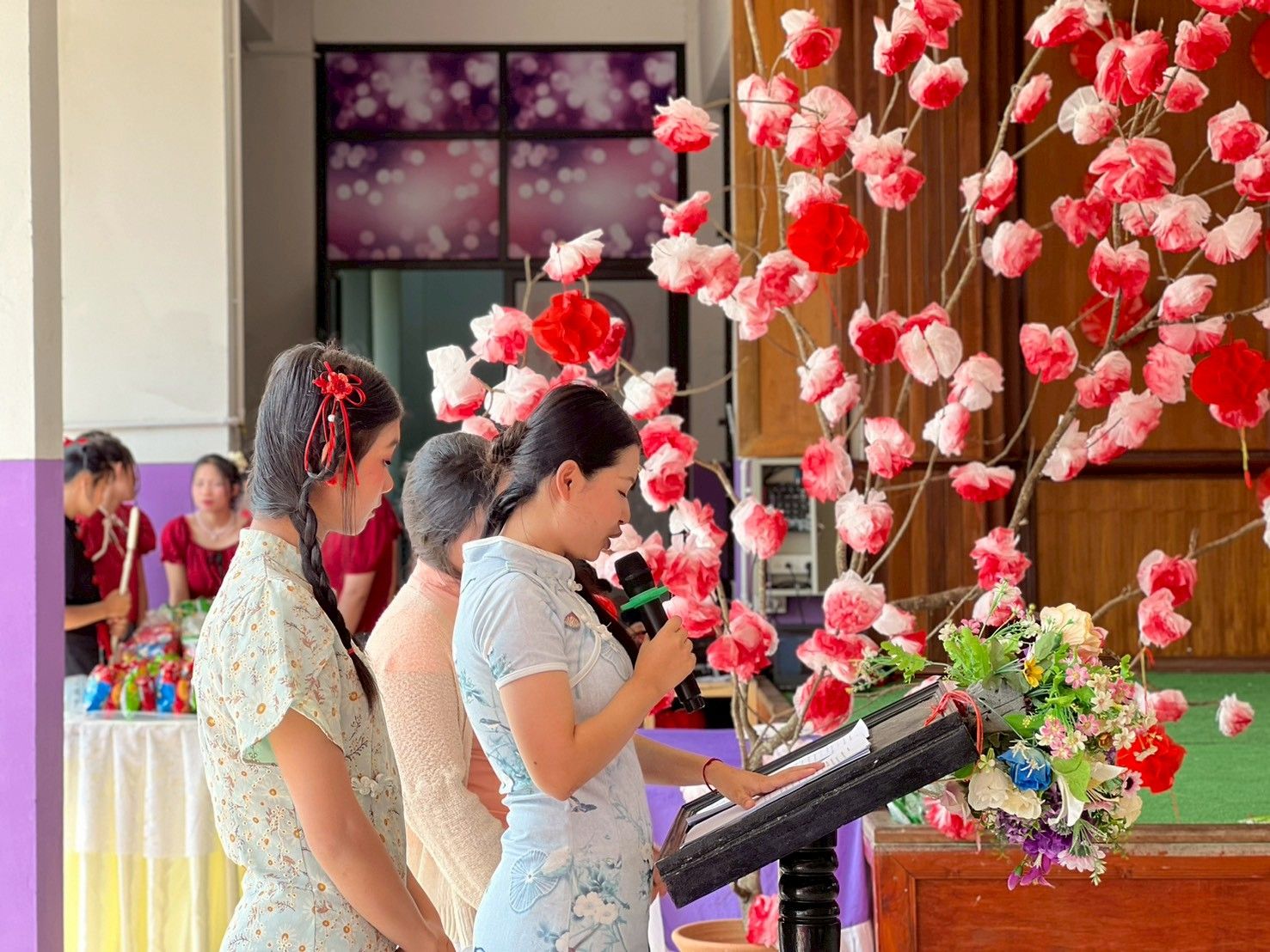 บรรยากาศภายในงานเป็นไปอย่างคึกคัก นักเรียนและคณะครูพร้อมใจกันแต่งกายด้วยชุดกี่เพ้า เสื้อผ้าโทนสีแดง และชุดจีนประยุกต์อย่างสวยงาม ซึ่งสีแดงถือเป็นสีแห่งความเป็นสิริมงคลตามความเชื่อของชาวจีน สะท้อนถึงความโชคดี ความรุ่งเรือง และความสุขตลอดปีใหม่