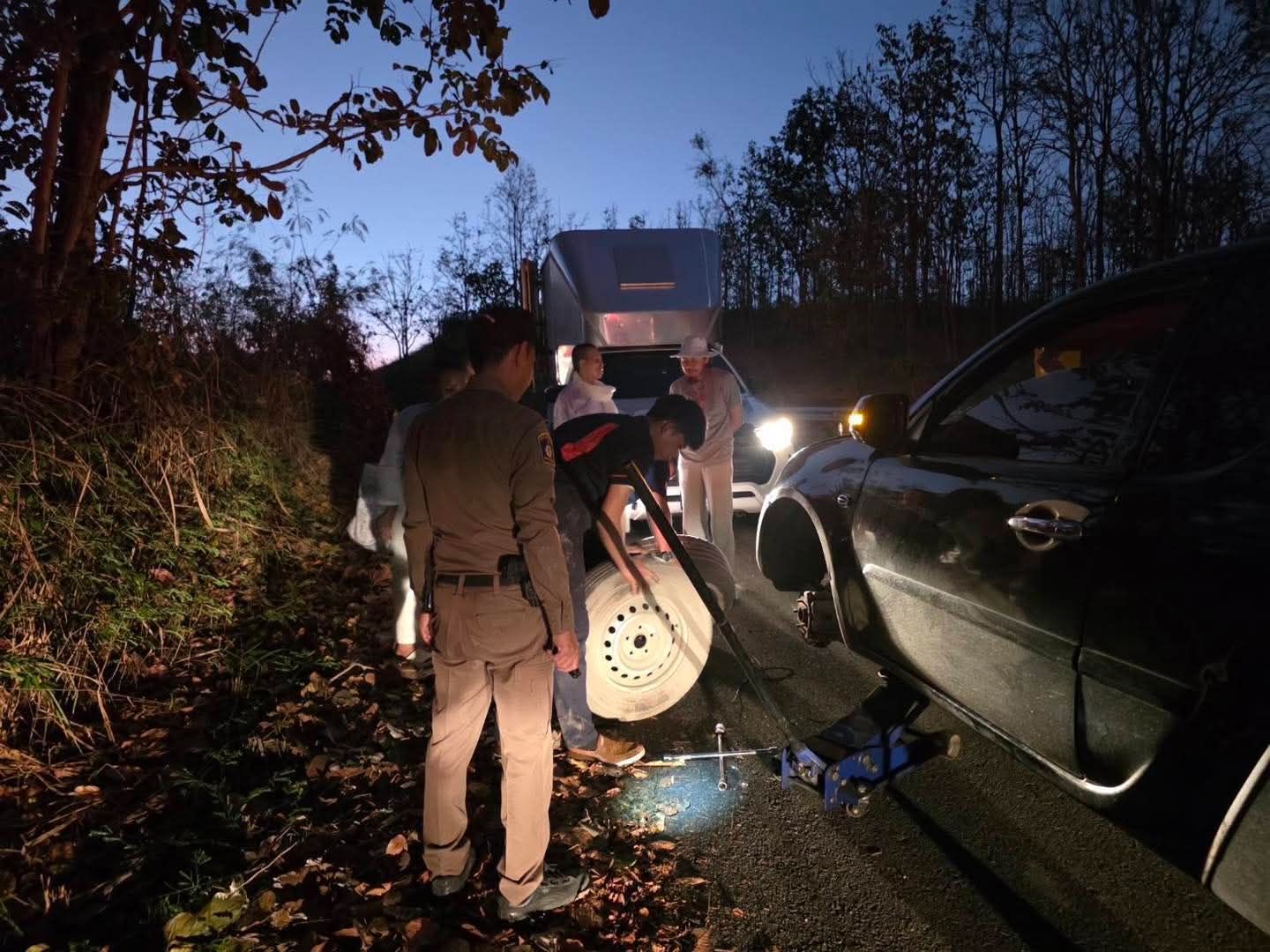 ตำรวจดอยหล่อรุดช่วยคณะแม่ชี! รถยางแตกกลางทางไปเวียงหนองล่อง เร่งประสานช่างเข้าแก้ไขจนเดินทางต่อได้ปลอดภัย