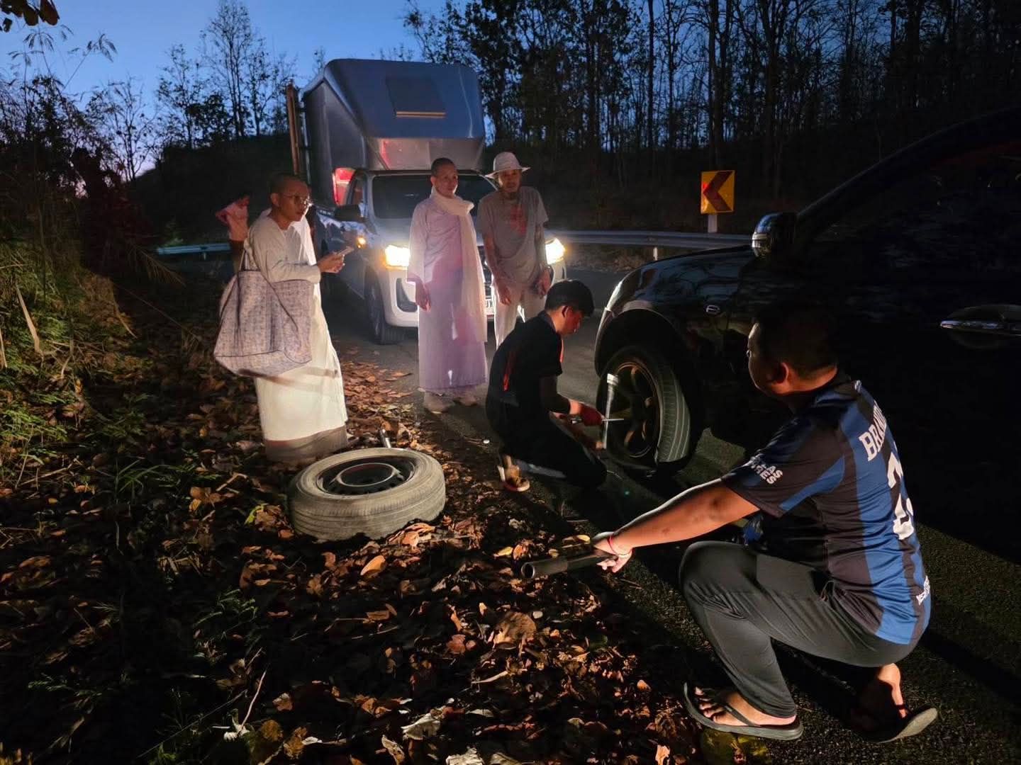 พร้อมทั้งเร่งประสานงานกับร้านซ่อมยางในพื้นที่ให้นำยางอะไหล่มาเปลี่ยนให้เป็นการชั่วคราว เพื่อให้คณะแม่ชีสามารถขับรถต่อไปยังร้านซ่อมเพื่อแก้ไขอย่างถาวรและเดินทางถึงที่หมายได้อย่างราบรื่น