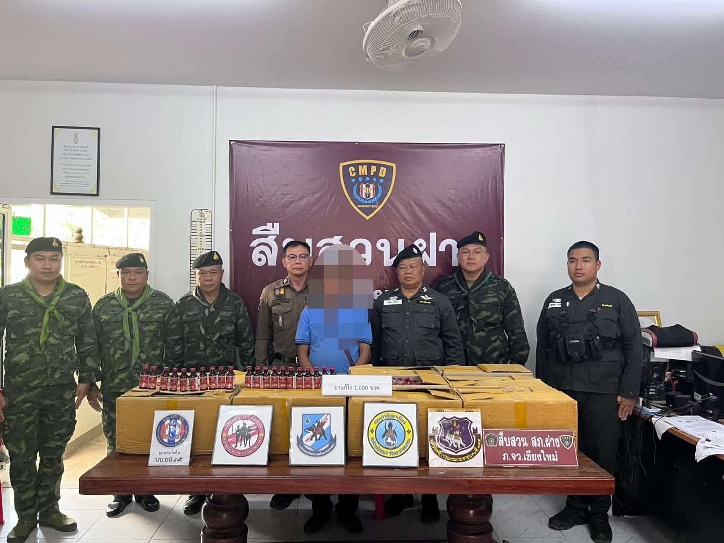 เมื่อวันที่ 27 กุมภาพันธ์ 2569 กองกำลังผาเมือง โดย กองบังคับการควบคุมผาดำ หน่วยเฉพาะกิจไชยานุภาพ ได้รับการประสานจาก กองร้อยตำรวจตระเวนชายแดนที่ 334 ว่าจะมีการลักลอบนำยาแก้ไอ ส่งออกนอกราชอาณาจักร ในพื้นที่ อำเภอฝาง จังหวัดเชียงใหม่ หน่วยจึงได้จัดกำลัง 1 ชุดปฏิบัติการ บูรณาการ ร่วมกับ เจ้าหน้าที่ตำรวจฝ่ายสืบสวน สถานีตำรวจภูธรฝาง ทำการเฝ้าติดตาม จนกระทั่งวันที่ 28 กุมภาพันธ์ 2569 เวลา 12.00 นาฬิกา ชุดปฏิบัติการ ได้ตรวจพบบุคคลนำกล่องพัสดุมาเตรียมไว้ เพื่อที่จะนำออกนอกราชอาณาจักรโดยผิดกฏหมาย บริเวณ ช่องทางนอแล ตำบลม่อนปิ่น อำเภอฝาง จังหวัดเชียงใหม่ หน่วยจึงแสดงตัวเพื่อขอตรวจค้น