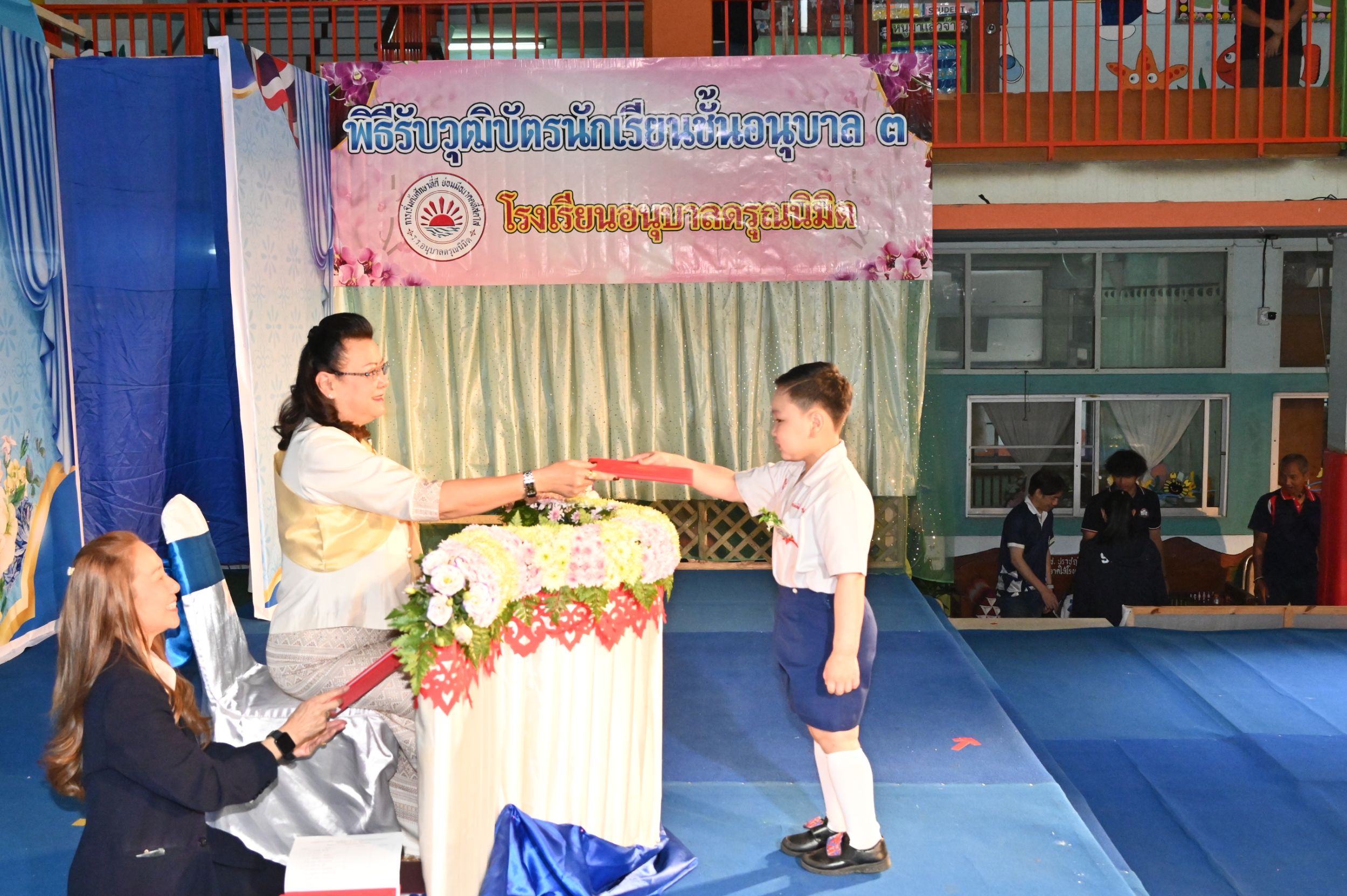 วันอาทิตย์ที่ 1 มีนาคม 2569 ณ โรงเรียนอนุบาลดรุณนิมิต จังหวัดเชียงใหม่ โรงเรียนได้จัดพิธีมอบวุฒิบัตรและงานประจำปีการศึกษา 2568 ภายใต้ชื่องาน “ดรุณนิมิตส่งดาวก้าวไกล ประสานใจครอบครัวสัมพันธ์ 68” ท่ามกลางบรรยากาศแห่งความปลาบปลื้ม อบอุ่น และเปี่ยมด้วยความภาคภูมิใจของผู้ปกครอง คณะครู บุคลากร และแขกผู้มีเกียรติที่เข้าร่วมแสดงความยินดีกับนักเรียนชั้นอนุบาลปีที่ 3 ซึ่งสำเร็จการศึกษาระดับสูงสุดของสถานศึกษา