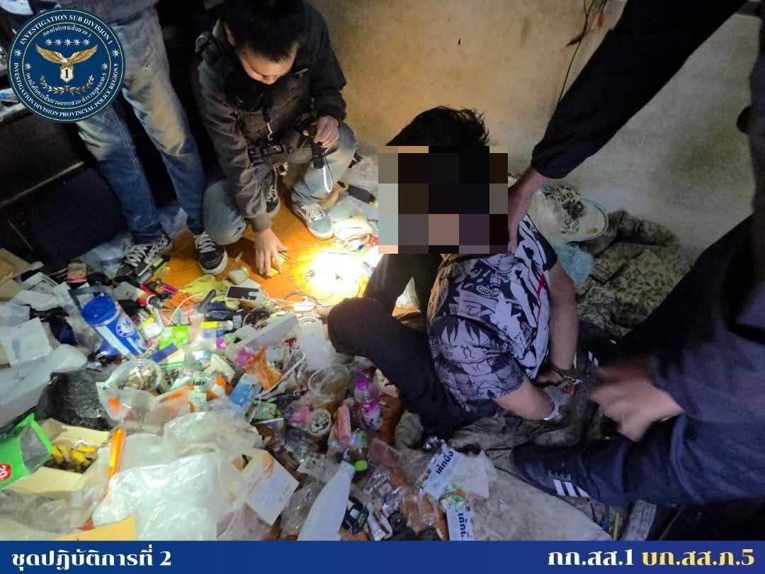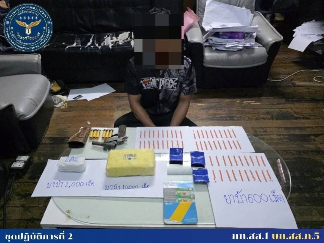 เชียงใหม่-บุกรวบคาห้องนอน! สืบภาค 5 ทลายเอเย่นต์ชุมชนแม่โป่ง ยึดยาบ้าหมื่นเม็ดพร้อมปืนลูกซอง
