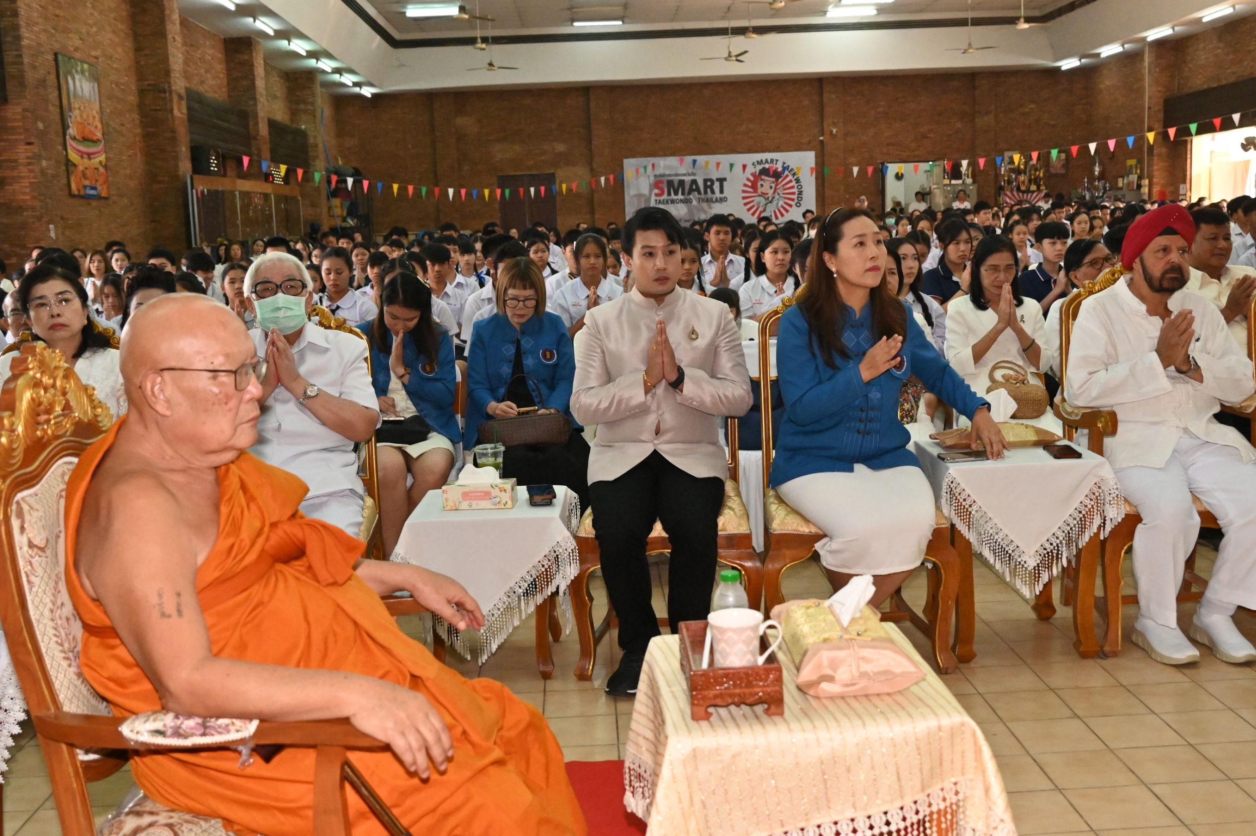 ตั้งแต่เวลา 08.00–08.30 น. ผู้ได้รับรางวัล ผู้ปกครอง คณะครู อาจารย์ และนักเรียนจากสถานศึกษาต่าง ๆ ในจังหวัดเชียงใหม่ ทยอยลงทะเบียนและพร้อมเพรียงกันภายในอาคารพุทธสถานเชียงใหม่ จากนั้นประธานในพิธีจุดธูปเทียนบูชาพระรัตนตรัย พิธีกรนำไหว้พระสวดมนต์ และร่วมร้องเพลง “มาฆบูชา” เพื่อรำลึกถึงเหตุการณ์สำคัญในสมัยพุทธกาล วันที่พระสงฆ์ 1,250 รูป มาประชุมพร้อมกันโดยมิได้นัดหมาย และพระพุทธเจ้าทรงแสดงโอวาทปาติโมกข์ อันเป็นหัวใจสำคัญของพระพุทธศาสนา